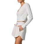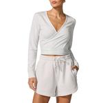 The Cozy Fleece Ballet Wrap Sweatshirt is super soft and breathable with just the right amount of stretch. The satin ribbon tie lets you customize the fit while the luxe fabric keeps you warm comfortable. Flattering and cozy, pre or post workout, this is going to be a favorite.