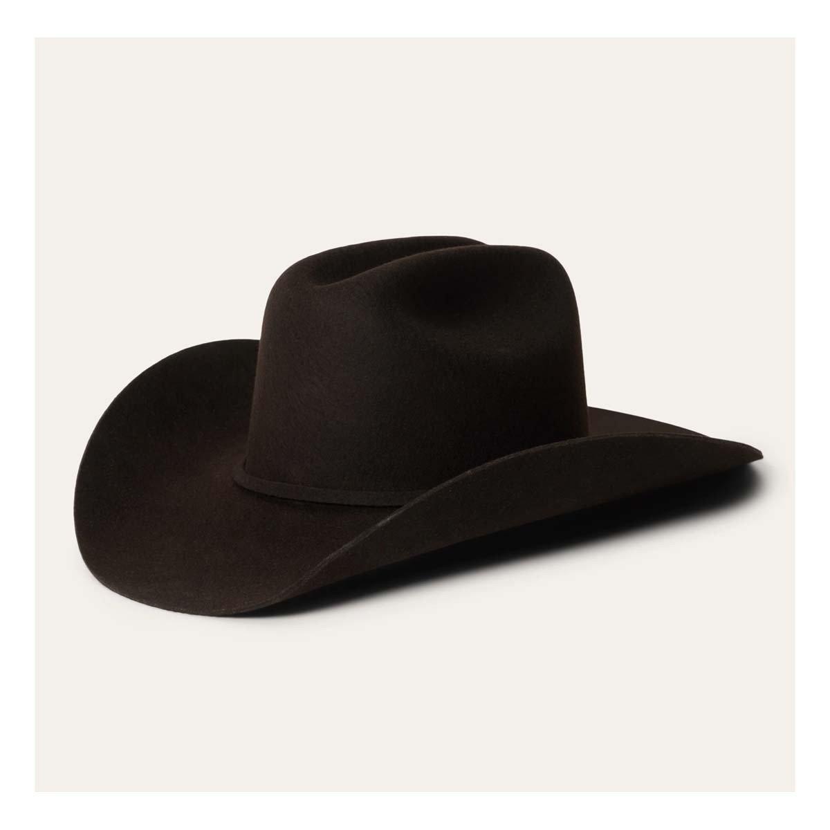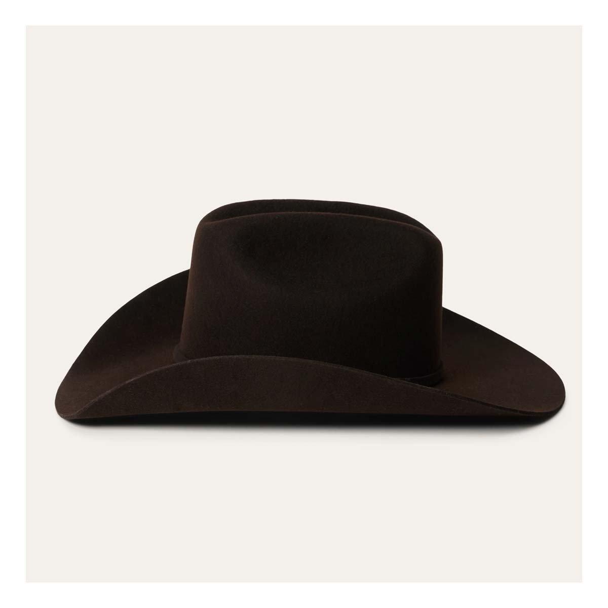 The Stetson Men's 4X Corral Buffalo Felt Hat in Chocolate is crafted from high-quality buffalo felt, ensuring durability and a structured look that can withstand daily wear. Its 4X quality felt offers a premium finish, ideal for those who value both style and function. Featuring a traditional cattleman crown and a classic wide brim, this hat provides optimal sun protection while embodying timeless Western style. The hatband adds a touch of sophistication, perfect for cowboys and outdoor enthusiasts alike. With its rugged material and sleek design, this hat delivers a blend of comfort and elegance, making it a versatile addition to any wardrobe. Explore the selection of Stetson hats at SCHEELS for quality craftsmanship and unmatched style.