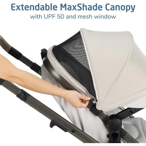 Both the stroller and infant car seat have vegan-leather accents for added style and comfort and are designed with EcoCare fabric, our premium, future-friendly, 100%-recycled fabric made from plastic bottles. The yarn produced is soft, comfortable, and breathable.