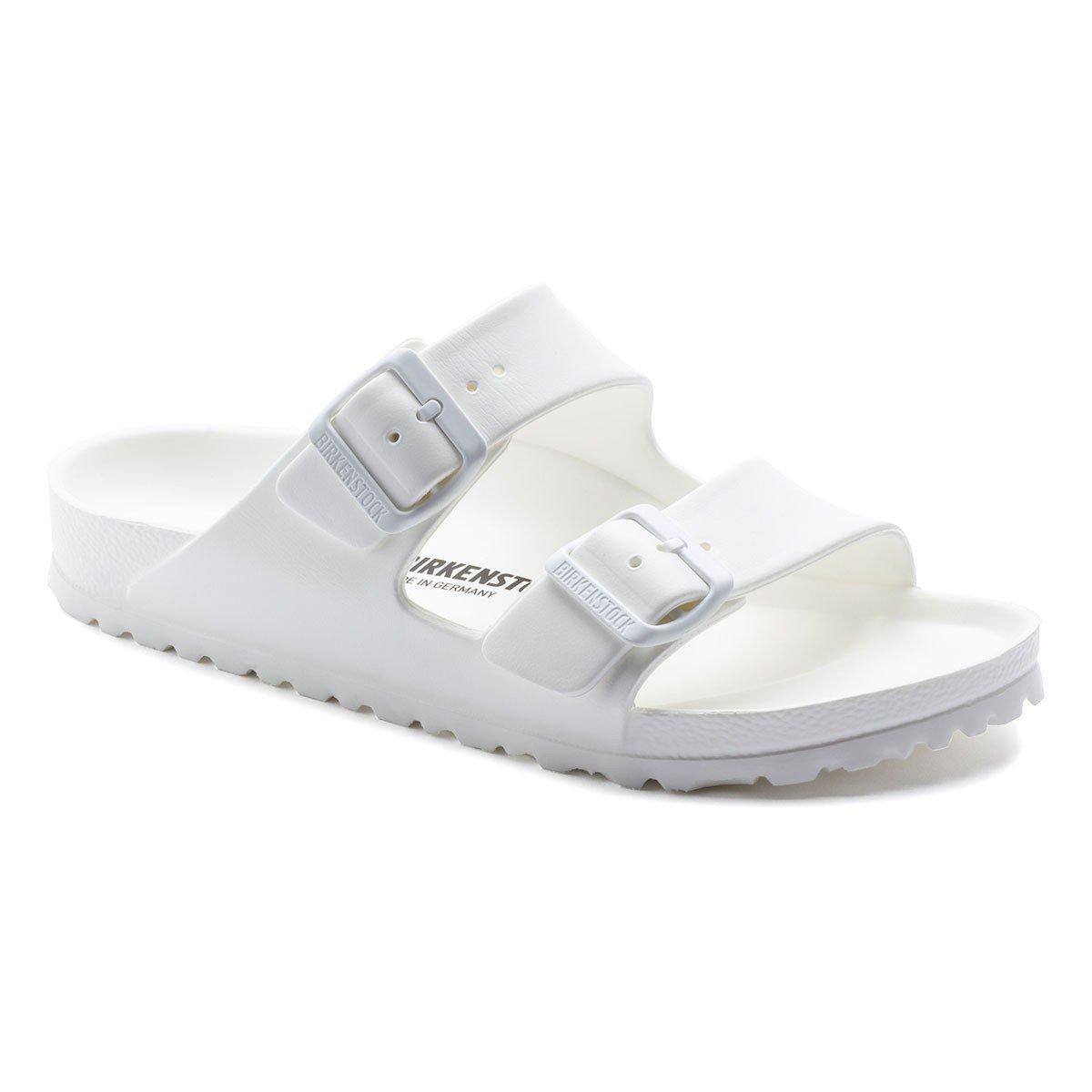 The Adult BIRKENSTOCK Arizona EVA Sandals are this season's must-have summer sandals. Constructed from an ultra-lightweight EVA material, similar to the foam that running shoes are made with, the Arizona EVA Sandals cushion and support your every step. With two adjustable straps, you'll enjoy a more secure fit. Most importantly, rubber BIRKENSTOCKs are waterproof. While the slip-on style makes the BIRKENSTOCK Arizona EVA ideal for the beach or gym, they really can be worn anywhere there’s warm weather. Plus, the BIRKENSTOCK Arizona EVA Sandals are durable and flexible for extended wear. Whether you're at the lake or taking a walk around town, wear the BIRKENTOCK Arizona EVA Sandals for maximum comfort.