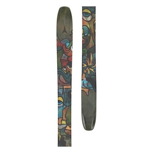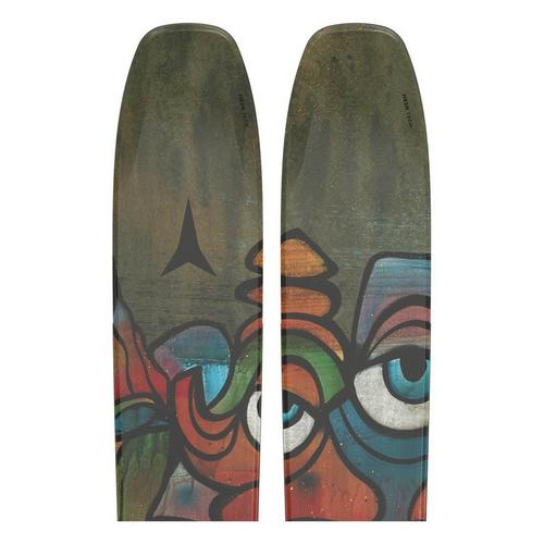 The Atomic Bent 110 takes a similar approach to the mountain as the Bent Chetler 120, with slightly less width. It’s Jossi Wells’s go-to ski for backcountry freestyle, charging lift-served pow laps and days where it’s deep, but not 120-deep. The Bent 110 is designed with HRZN Tech Tip and Tail for a playful performance and better float through blower without adding bulk to the ski. The 110 features a bit less rocker in the tail than the 120 but still charges through variable chop and crud. A Light Woodcore reduces weight and keeps the performance responsive. With topsheet and base art by Chris Benchetler, the 110 is wholly reflective of his approach to the mountains: creative and unique.