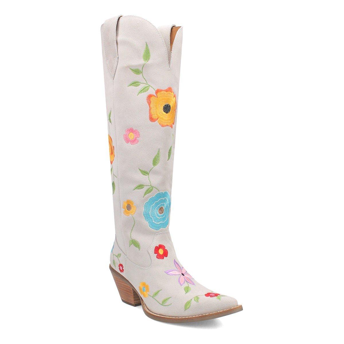 {"reviews":[],"offset":0,"limit":10,"total":0,"gtin":"887520461739"}"Full Description:\nFlower Power Suede\n\nFeatures:\n\u003cul>\n\u003cli>Crafted from genuine suede leather for a luxurious feel\u003c/li>\n\u003cli>Features a stylish 18-inch shaft height\u003c/li>\n\u003cli>Designed with a comfortable 12-inch circumference\u003c/li>\n\u003cli>Equipped with a cushion comfort insole for all-day wear\u003c/li>\n\u003cli>Classic snip toe shape for an authentic Western look\u003c/li>\n\u003cli>Offers a flattering 2 1/2-inch heel height\u003c/li>\n\u003cli>Durable TPR rubber outsole provides reliable traction\u003c/li>\n\u003cli>Western-inspired design perfect for casual or dressy occasions\u003c/li>\n\u003c/ul>\n\nSpecifications:\n\u003cul>\n\u003cli>Foot Material: SUEDE LEATHER\u003c/li>\n\u003cli>Shaft Height: 18"\u003c/li>\n\u003cli>Circumference: 12"\u003c/li>\n\u003cli>Insole: CUSHION COMFORT INSOLE\u003c/li>\n\u003cli>Toe Shape: Snip\u003c/li>\n\u003cli>Heel Height: 2 1/2"\u003c/li>\n\u003cli>Outsole: TPR RUBBER\u003c/li>\n\u003c/ul>\n"
