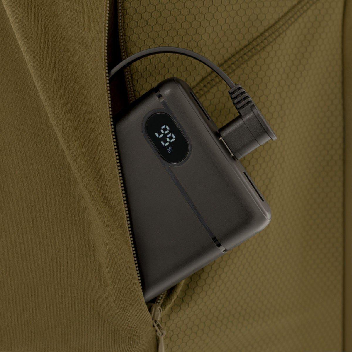 Part of Muddy’s all-new assortment of hunting apparel and accessories, the Nucleus Heated Quarter-Zip boasts three heat settings—low, medium, and high—allowing wearers to choose the level of warmth that best meets their needs on each hunt, so they’re better equipped to outlast lengthy sits. Based on the setting selected, two heating elements across the back of this next-to-skin base layer radiate warmth generated by the single 10,000mAh battery, warming you from the inside out. To adjust the warmth level, simply press the conveniently located power button on the chest. The low-fitting, ¼-zip collar delivers added breathability and eliminates worry over bunching when layering up against cold, late-season conditions. Raglan seams are strategically placed throughout, allowing for a full range of motion, regardless of the weather late season dishes out.