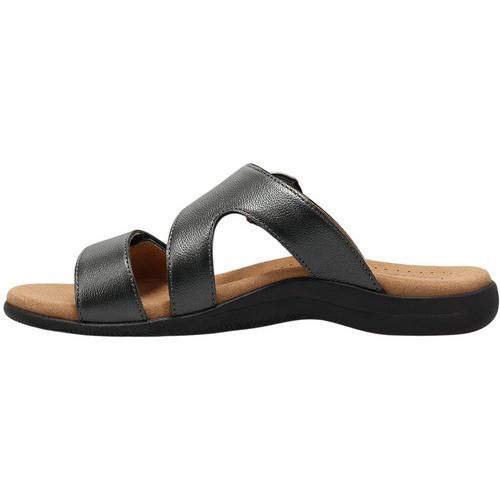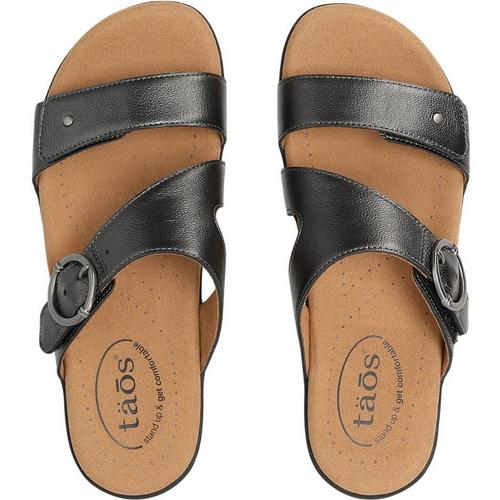 Meet your new go-to sandal, where on-trend styling meets Taos quality and support. Westside features beautiful metallic leather for a subtle, eye-catching shimmer, with soft Italian leather lining that delivers a rich, luxurious feel against your skin. Two adjustable hook-and-loop straps with a decorative buckle offer a custom, secure fit with a touch of playful detail. Designed for all-day wear, Westside showcases our signature SOFT SUPPORT™ sandal construction with Soft Cool Recovery Foam® cushioning for exceptional arch support and shock absorption. An embossed microfiber footbed treated with an antimicrobial shield helps keep your feet cool, dry, and fresh. Finished with a flexible, durable rubber outsole for confident, long-lasting wear, this is the sandal that takes you everywhere in comfort and style.