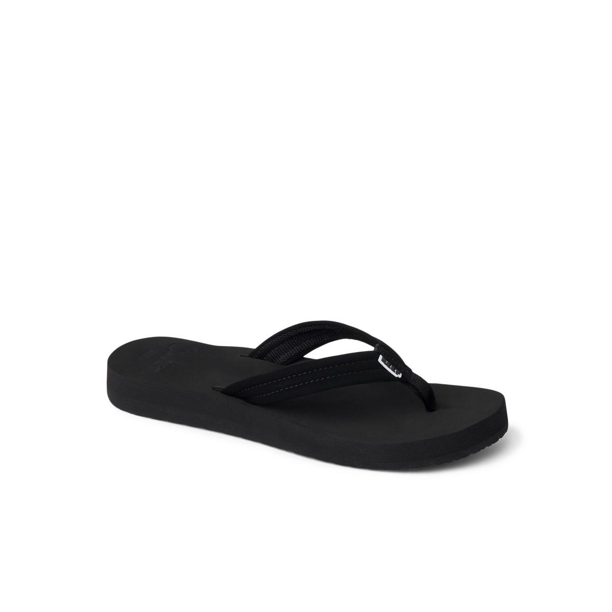 Ready for the beach? So are these oh so cozy flip flops. Their faux nubuck strap features stitch detailing, a pillowy footbed cushions every step, the soft webbing liner is gentle on your skin and the flexible rubber sponge outsole makes walking a – wait for it – breeze. Features: Faux nubuck strap with stitch detail.
