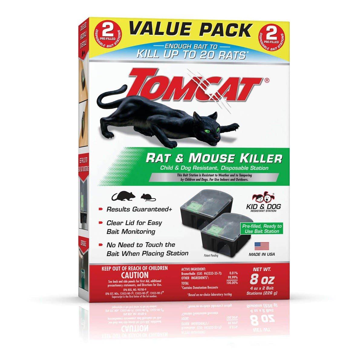 Disposable rat and mouse bait station. Effectively kills rats & mice while providing the highest level of station security. Resistant to tampering by children and dogs. Pre-loaded, so no need to touch the bait when placing the station. See-through window for easy bait monitoring. Each 4 Oz. bait block kills up to 10 rats. Active ingredient: 0.01% Bromethalin.
