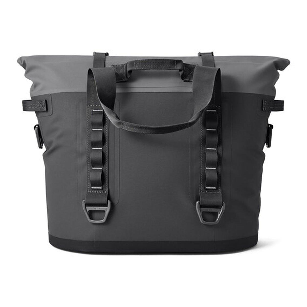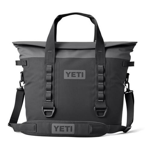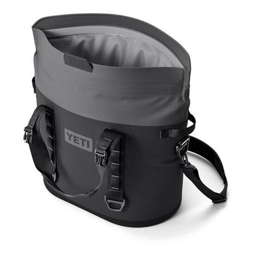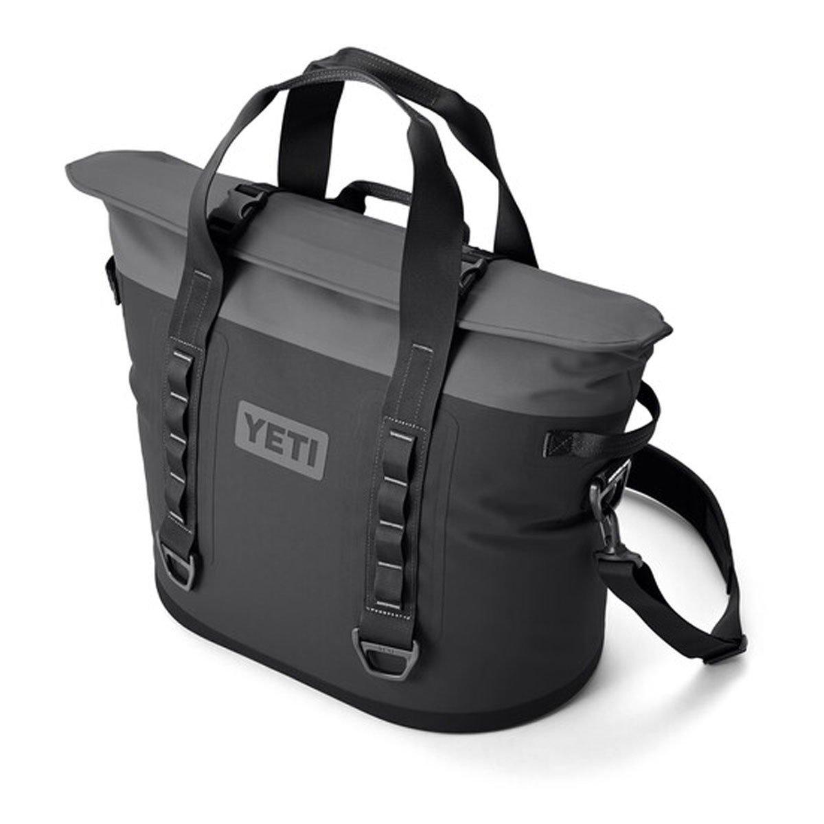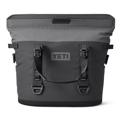 The Hopper® M30 Soft Cooler is YETI's tough-as-nails soft cooler that can carry 42 cans (only) of your favorite beverage (or 32 pounds of ice). Their signature wide-mouth opening has been reengineered to stay open with ease and close tight with a gentle push. A strip of ultra-strong magnets locks in cold while Quick-Release Buckles provide extra security through choppy water or when riding through rough terrain in the bed of a truck.