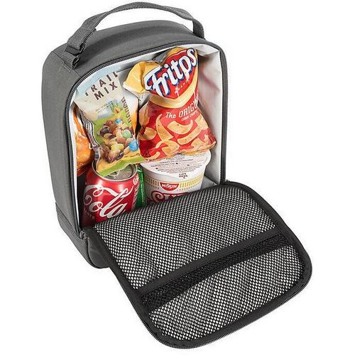 Insulated Whether you're packing snacks for a short trip or eating at the jobsite, this cooler keeps food and drinks cold. It's made of durable, water-repellent fabric, with a durable lining that makes spills a cinch to clean up. Attach it to your backpack with the hook on the top handle.