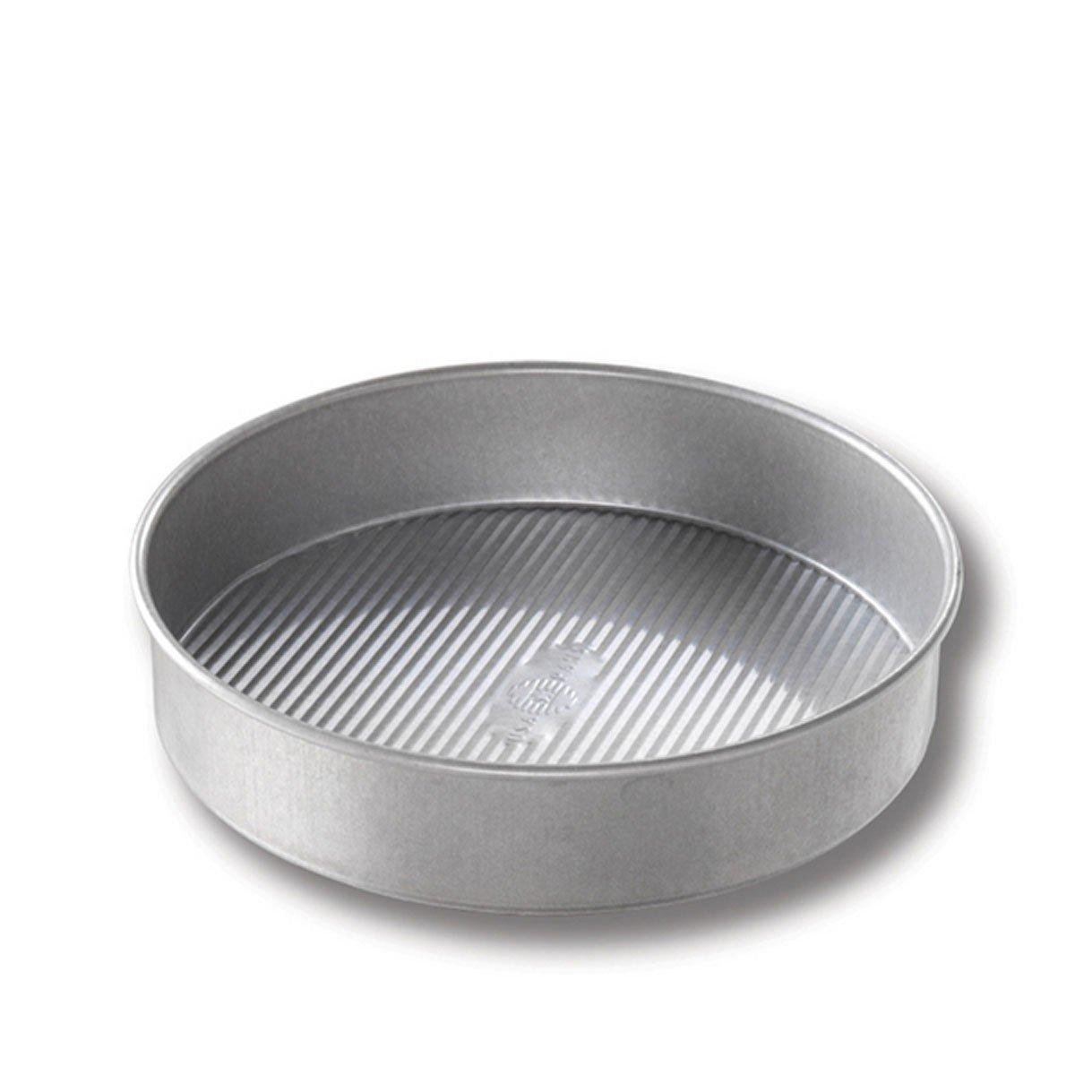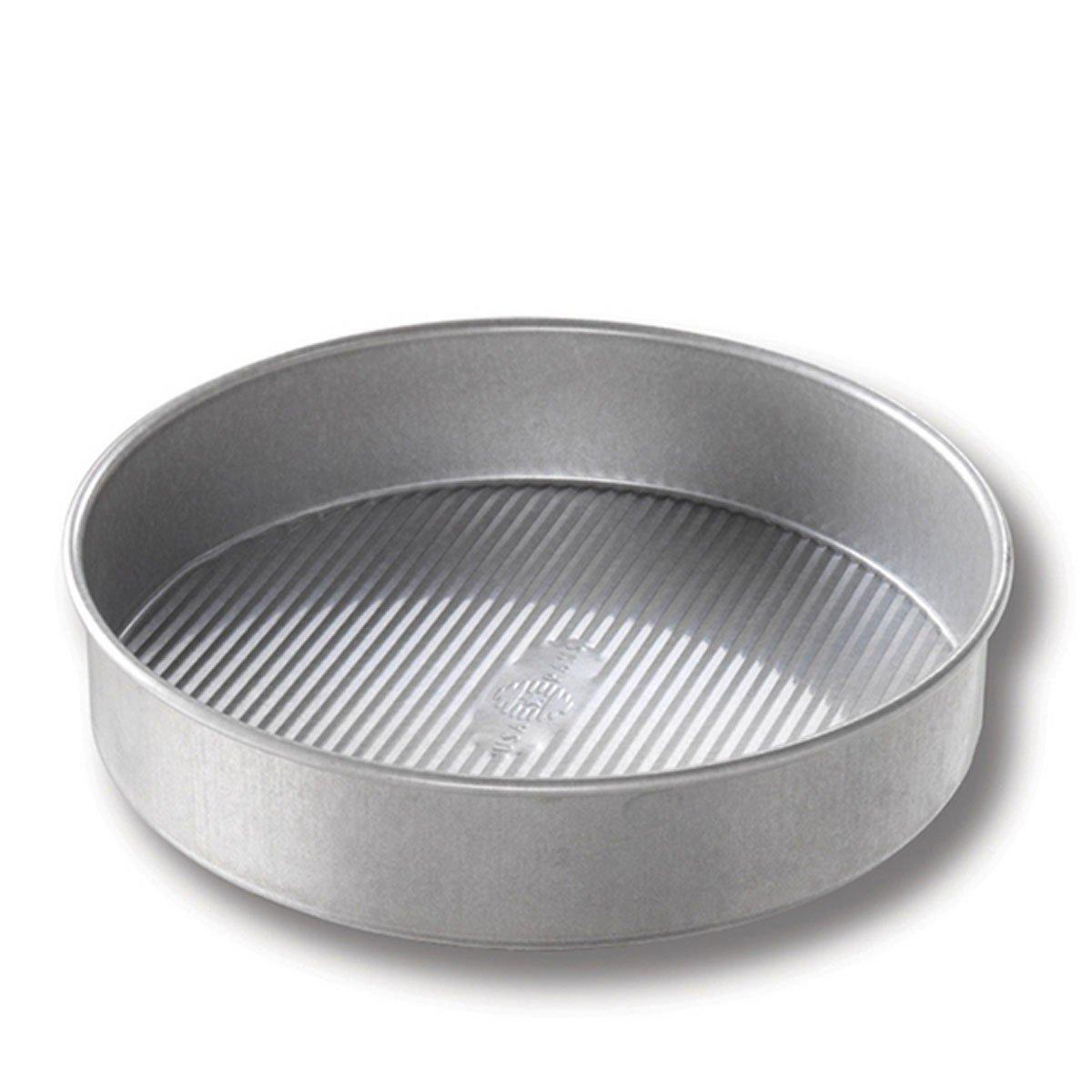 {"reviews":[],"offset":0,"limit":10,"total":0}"Full Description:\nThe USA Pan 9 in. Round Cake Pan measures a full 9 x 2 in. and makes the perfect choice for baking decadent classic cakes. This pan will bake your favorite cake recipes like chocolate or red velvet, perfectly. The cake pan surface is coated with AMERICOAT Plus, a patented non-stick silicone, allowing you to easily release your cake from the pan. The non-stick feature makes clean-up truly effortless. AMERICOAT Plus is also PTFE, PFOA, and BPA free. Every USA Pan has been designed with the same standard high performance features that commercial bakers enjoy including aluminized steel and heavy gauge steel construction that allows for even heat distribution and maximum service life. USA Pan 9 in. Round Cake pan’s unique fluted surface design facilitates air circulation and also maximizes pan strength, which helps to resist warping. USA Pan’s professional grade bakeware helps everyday home bakers produce professional grade baked goods. USA Pan bakeware is long-lasting, durable, reliable, and comes with a limited lifetime warranty. USA Pan is a Bundy Family owned company, based in the Greater Pittsburgh, Pennsylvania area that has been producing high performance bakeware for over 50 years. Dimensions represent baking surface, not overall pan size.\n\nFeatures:\n\u003cul>\n\u003cli>Aluminized steel construction enables long lasting durability\u003c/li>\n\u003cli>Non-stick silicone surface allows for easy clean up\u003c/li>\n\u003cli>Heat-resistant up to 450° in the oven\u003c/li>\n\u003cli>Includes: 1 round cake pan\u003c/li>\n\u003cli>PTFE / PFOA free\u003c/li>\n\u003c/ul>\n\nSpecifications:\n\u003cul>\n\u003cli>1070LC-6\u003c/li>\n\u003c/ul>\n"