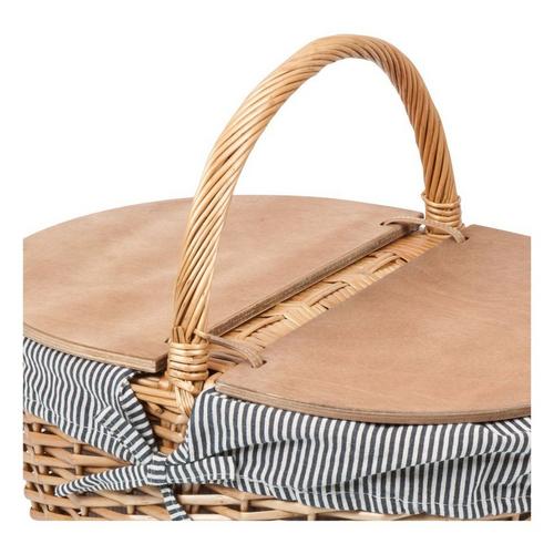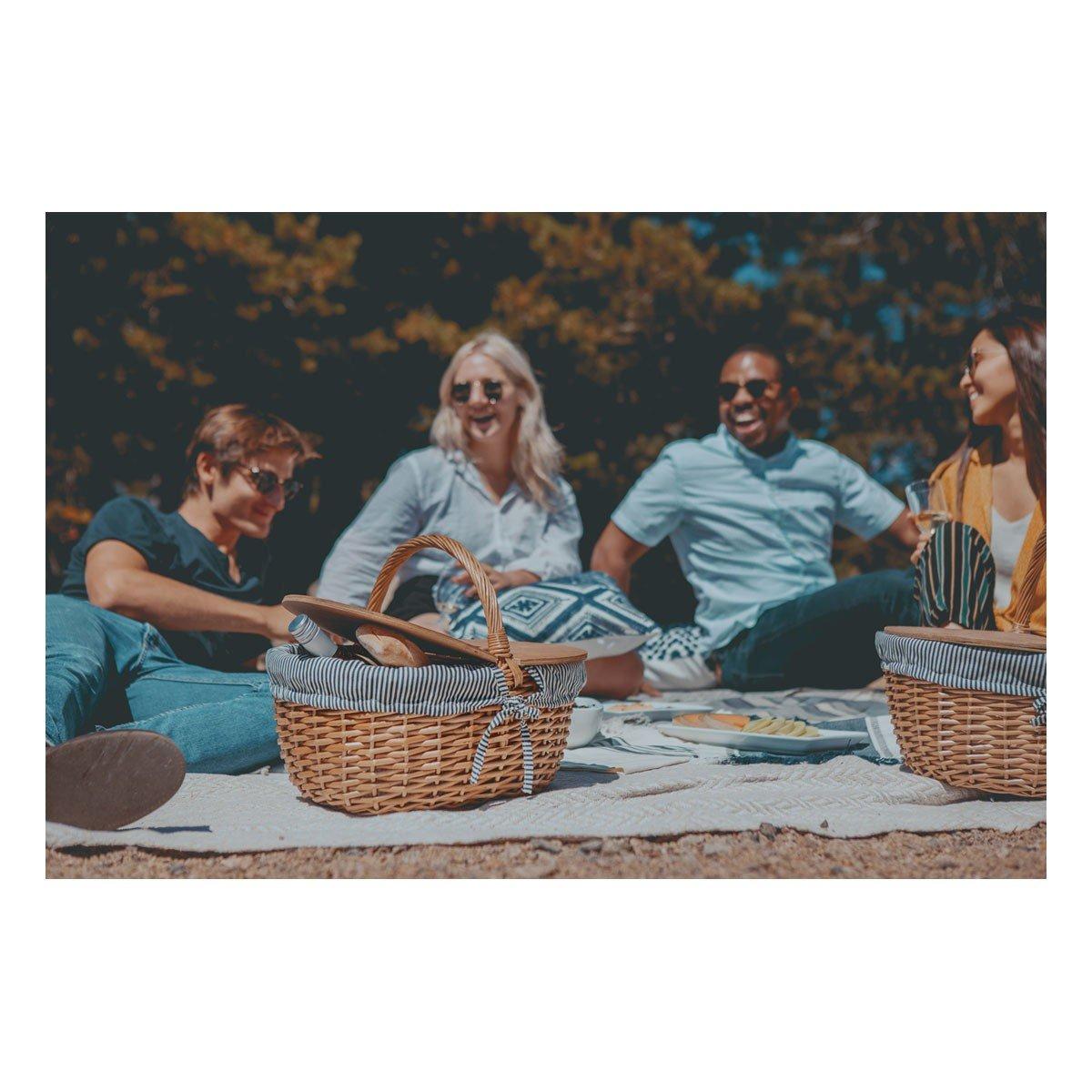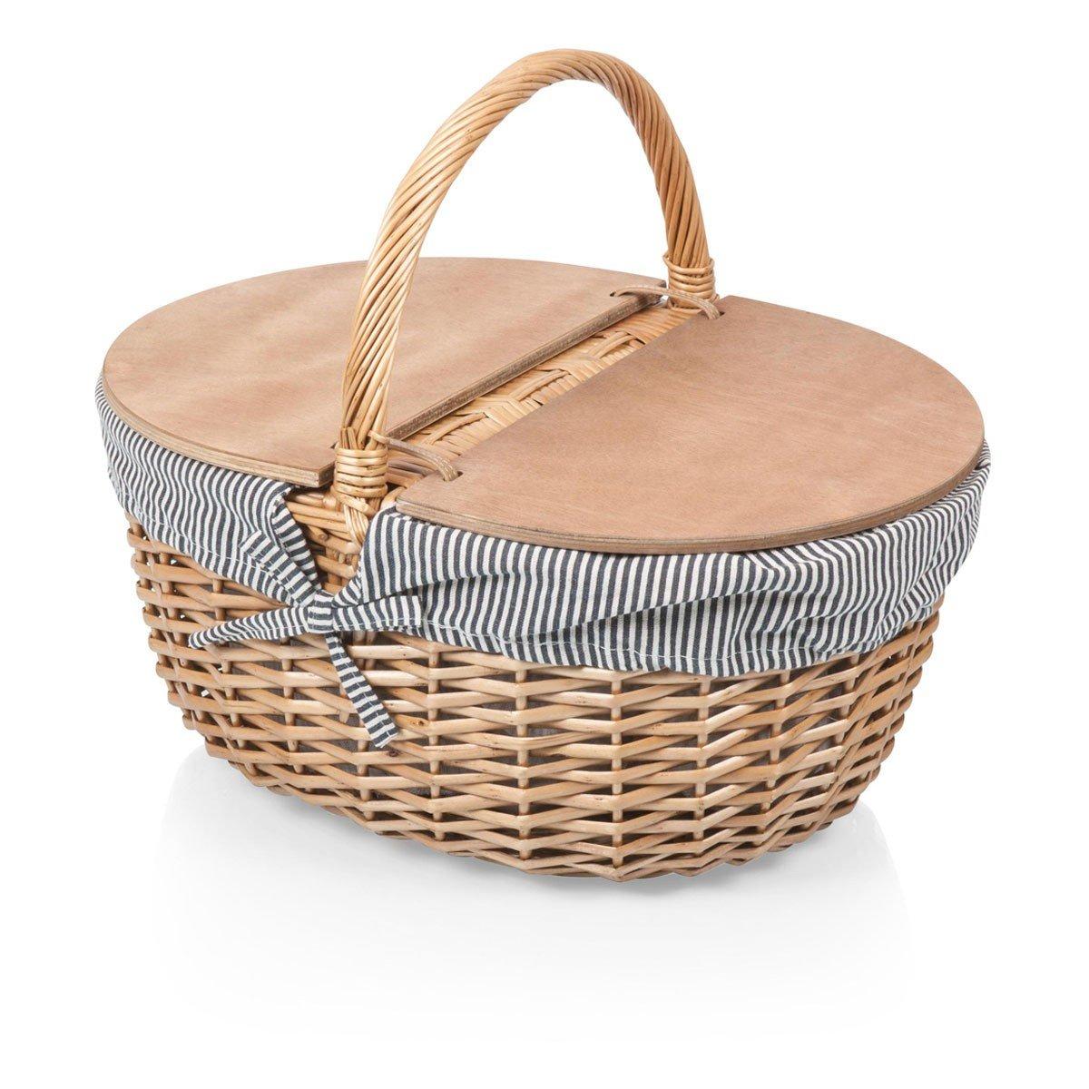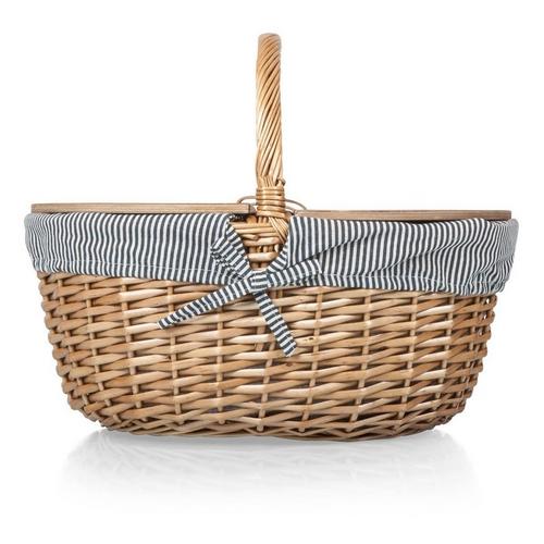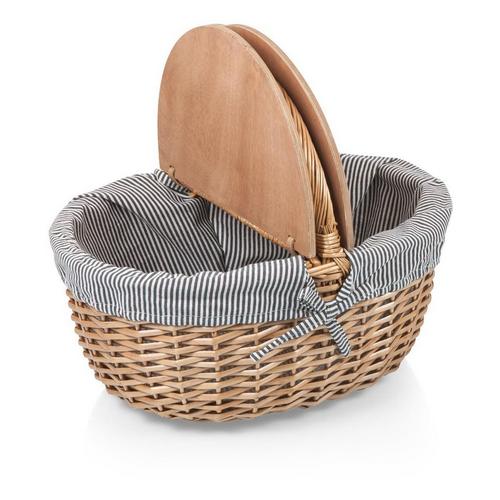 Straight out of a storybook, the Country Vintage Picnic Basket with Lid is a classic English-inspired split lid small wicker picnic basket set for 2. With a lovely handwoven-willow body, a sturdy grab-and-go handle, a washable poly/cotton liner, and a wooden split-lid for dual entry that can also be used as a level surface for cups and plates, this picnic basket brings a stylish vintage sensibility. This basket even offers an opportunity for self-expression if you're crafty/DIY type - you can paint, chalk, or draw on the lid to customize your basket and make it 100% your own!