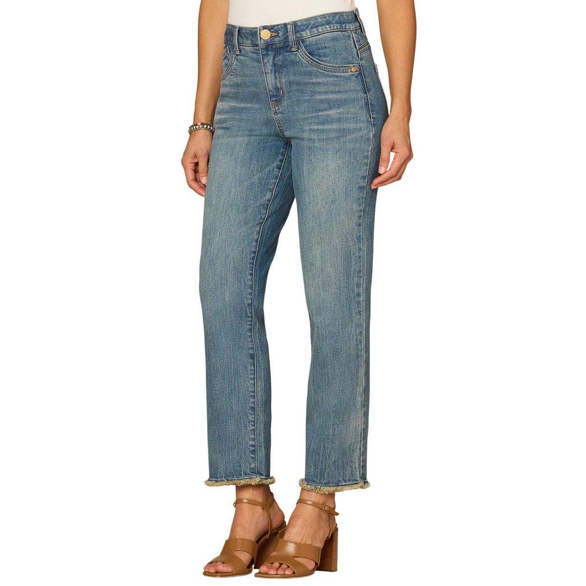 Women's Democracy “Ab”solution Embroidered Pocket Fray Hem Straight Jeans
