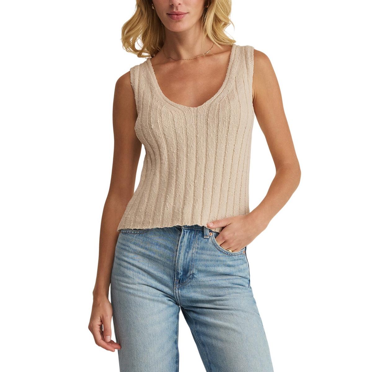 FittedPebbled Yarns: 51% Cotton, 44% Acrylic, 4% Polyamide, 1% ElastaneV-neckSleevelessMidweightHeavy soft washLength from shoulder is 20 1/4"