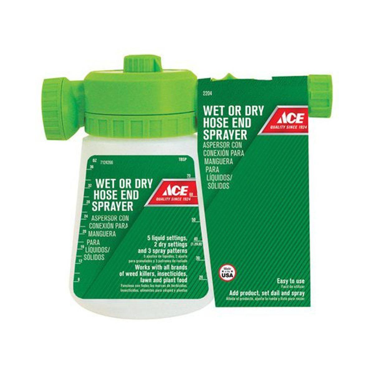 Works with all brands of weed killers, insecticides, lawn and plant food. The sprayer features 5 liquid settings, 2 dry settings and 3 spray patterns. Easy to use. Just add product, set the dial and spray.