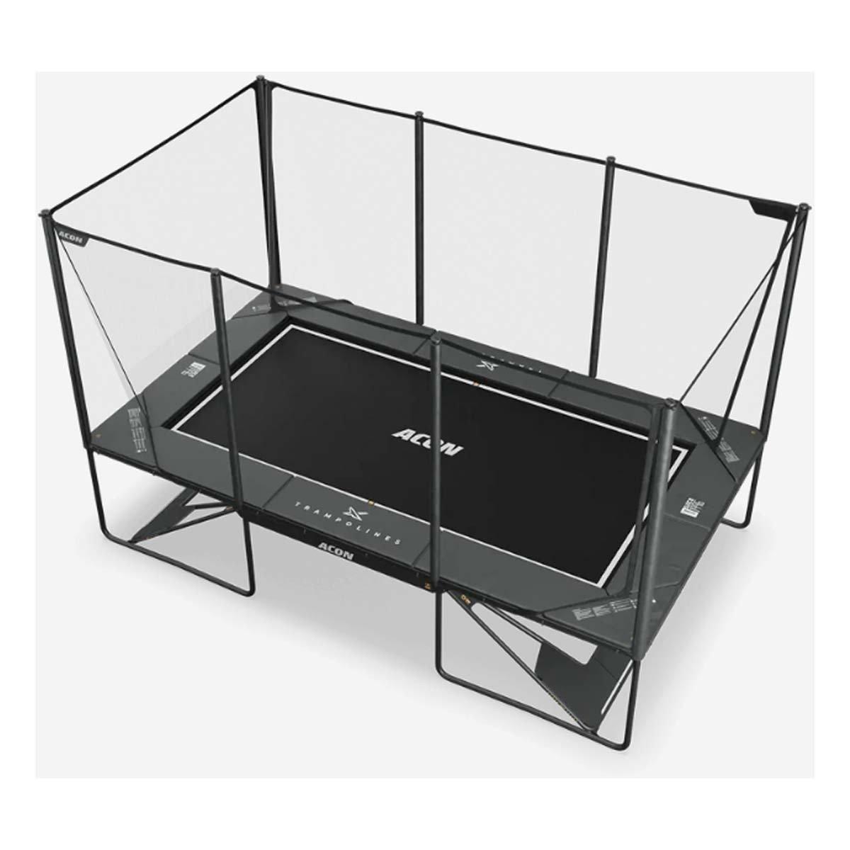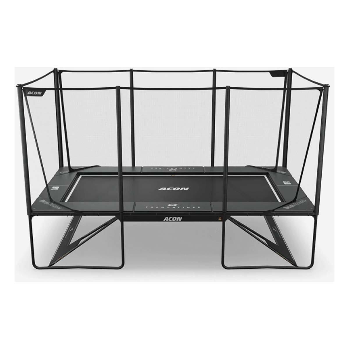 Flexible middle enclosure pole connections. The Acon X 17ft trampoline has enclosure poles that have built in flexibility in their attachment points to provide optimal safety. When jumpers lean into the pole or enclosure, it flexes, but retains its strength, keeping jumpers safely on the trampoline and the enclosure in shape and firmly in place.