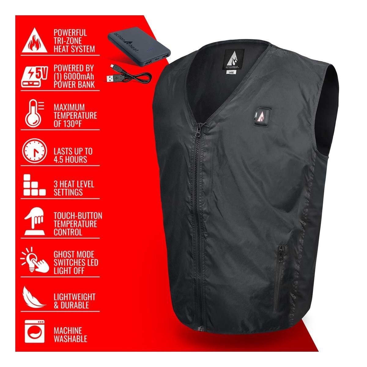 The ActionHeat Vest Liner is a great option for those who want to stay warm without all those bulky layers. Designed to be worn over another garment or under a jacket, the ActionHeat heated Vest Liner has built-in heat panels that keep your torso warm. The heated garments use FAR infrared heating and ActionWave heat reflective technology to deliver hours of heat and comfort to enjoy outdoor winter activities. Whether you are hunting, tailgating, or enjoying the winter season, the ActionHeat 5 Volt Heated Vest Liner is ready to keep your warm!