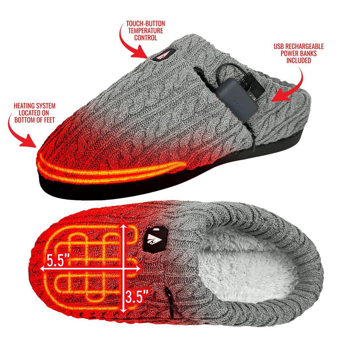 Take the chill out of cold winter evenings with the ActionHeat 5V Cable Knit Heated Slippers! The perfect way to keep your feet cozy and comfortable, these slippers are made from a luxurious wool blend and feature a fuzzy lining for added warmth. Enjoy up to 5 hours of toasty goodness with the rechargeable 5V battery, and never worry about being cold and uncomfortable again. Whether you're relaxing on the couch or out running errands, the ActionHeat 5V Cable Knit Heated Slippers will keep your feet warm and stylish.