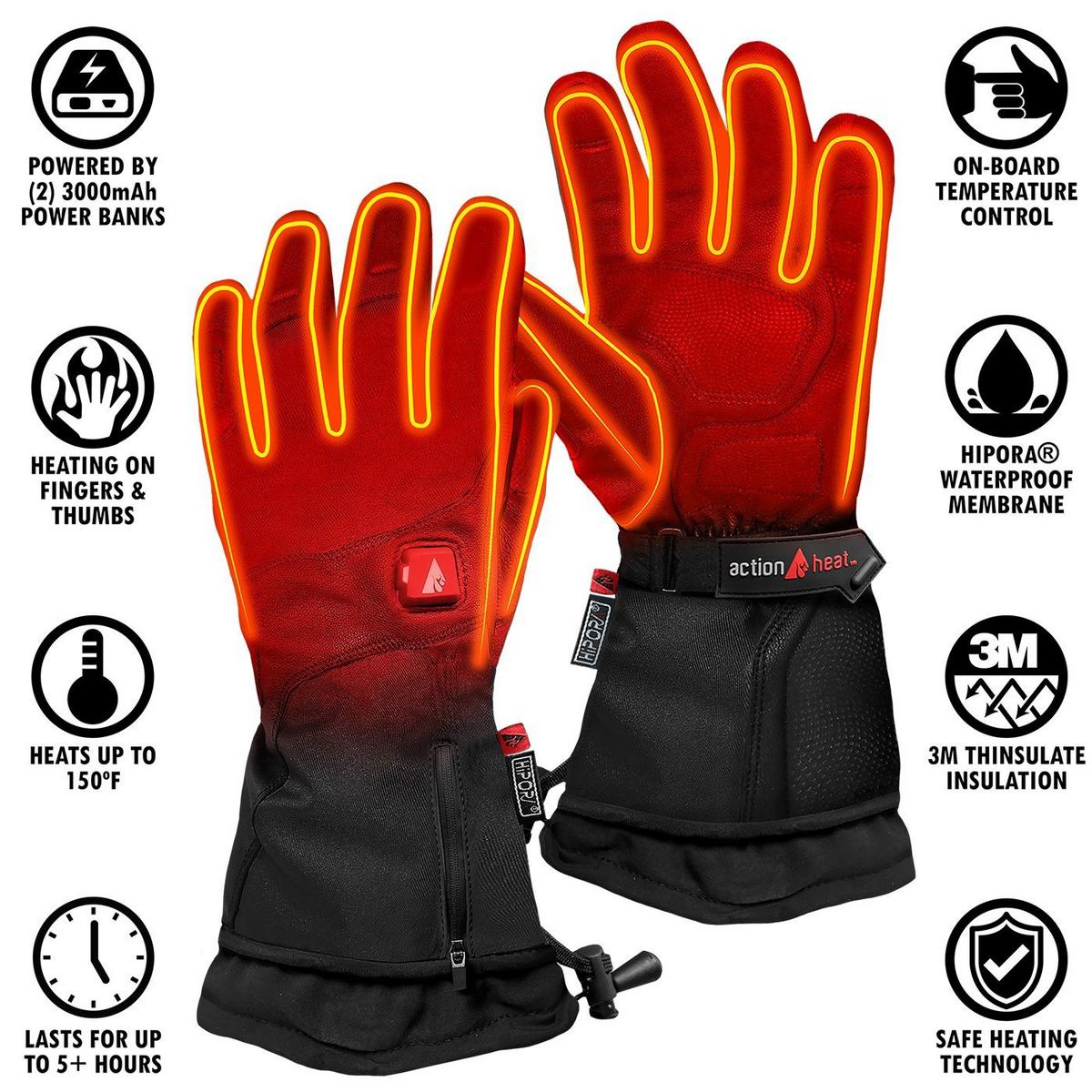 The ActionHeat 5V Premium heated gloves feature an innovative design & weathertight construction to provide a long-lasting, warm and comfortable experience. The premium gloves can last up to 5+ hours and can get up to 150F.