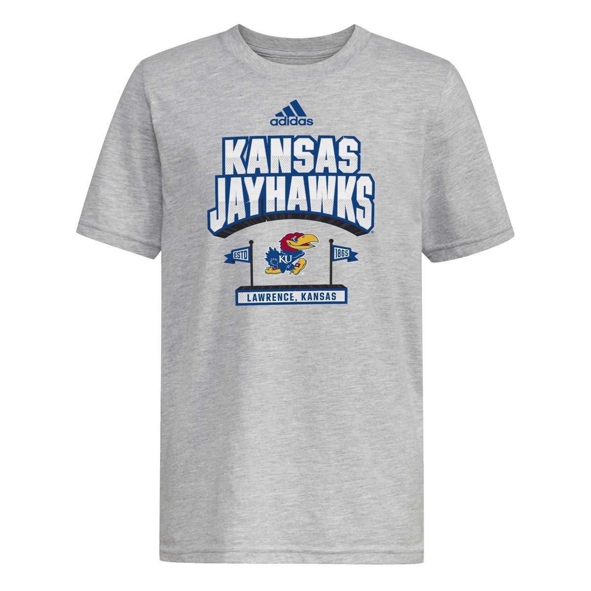 Show everyone who you root for with the adidas Kids' Kansas Jayhawks Stake Claim T-Shirt. Featuring Kansas Jayhawks graphics and colors, you’ll be ready to cheer your favorite College team to victory. Whether you’re heading to the game or just want to show off your favorite team, this Kansas Jayhawks top will leave no doubt where your loyalty lies. Wear your team’s colors and show off your pride with the adidas Kids' Kansas Jayhawks Stake Claim T-Shirt.