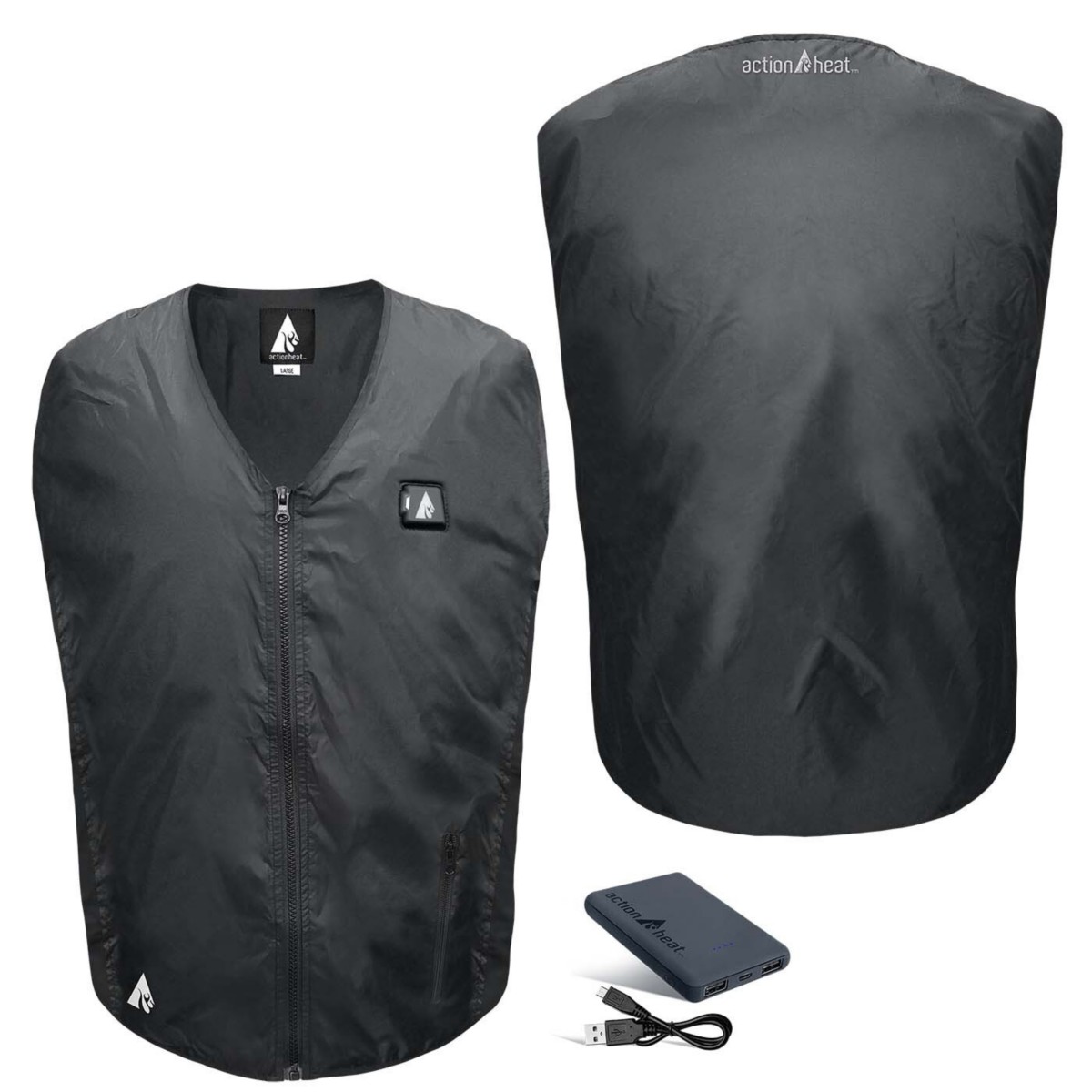 The ActionHeat Vest Liner is a great option for those who want to stay warm without all those bulky layers. Designed to be worn over another garment or under a jacket, the ActionHeat heated Vest Liner has built-in heat panels that keep your torso warm. The heated garments use FAR infrared heating and ActionWave heat reflective technology to deliver hours of heat and comfort to enjoy outdoor winter activities. Whether you are hunting, tailgating, or enjoying the winter season, the ActionHeat 5 Volt Heated Vest Liner is ready to keep your warm!