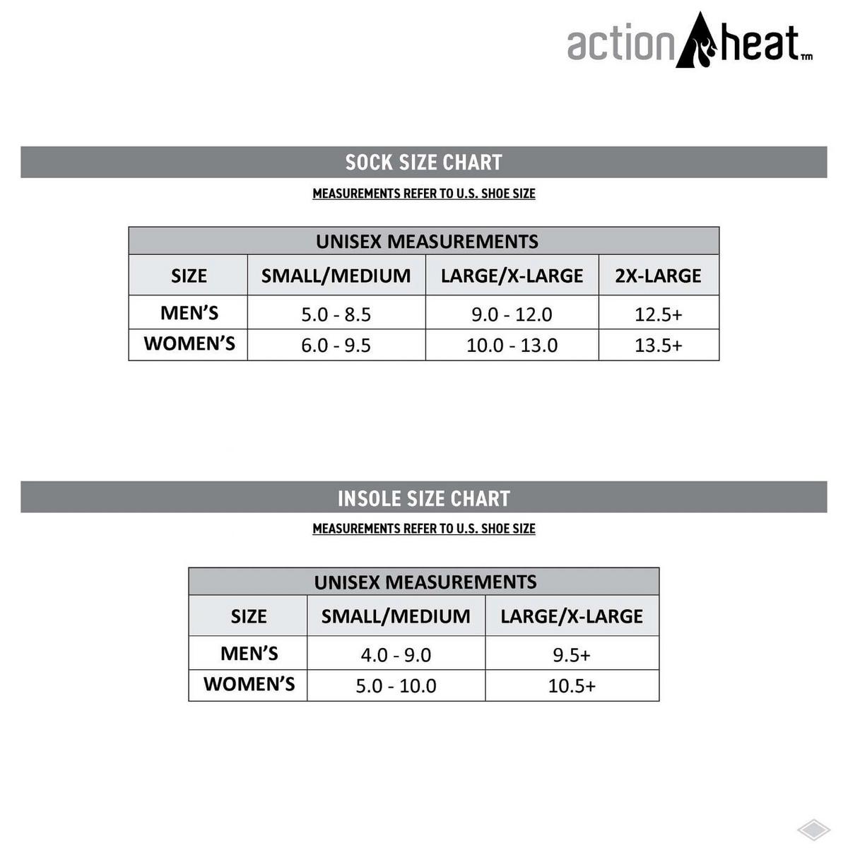 The ActionHeat Wool 5V Battery Heated Socks will help you take all your cold-weather activities to the next level. These revolutionary socks feature the highest-tested performance of all ActionHeat items and will keep your feet feeling toasty warm as you take on the coldest winter days. With a maximum temperature of 150F and the ability to last up to 5 hours, these socks are the perfect blend of quality and comfort. ActionHeat battery heated apparel utilizes FAR infrared heating and ActionWave heat reflective technology to deliver hours of warmth and comfort. Whether you're skiing, snowboarding, camping, or just going for a walk in the cold, the ActionHeat Wool 5V Battery Heated Socks will keep your feet warm and insulated.