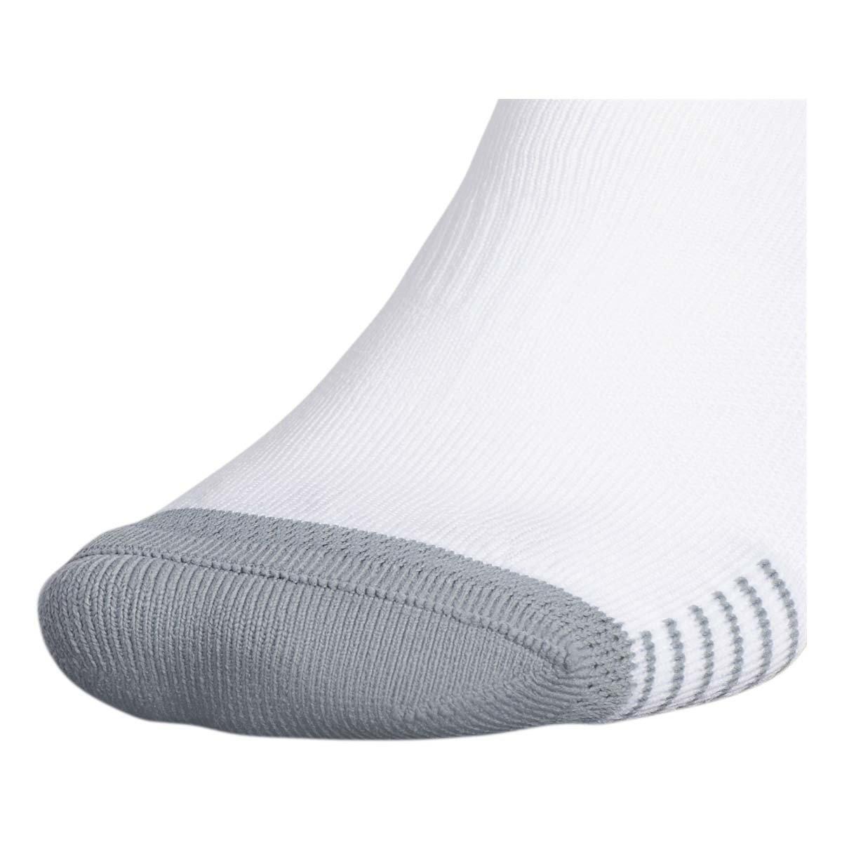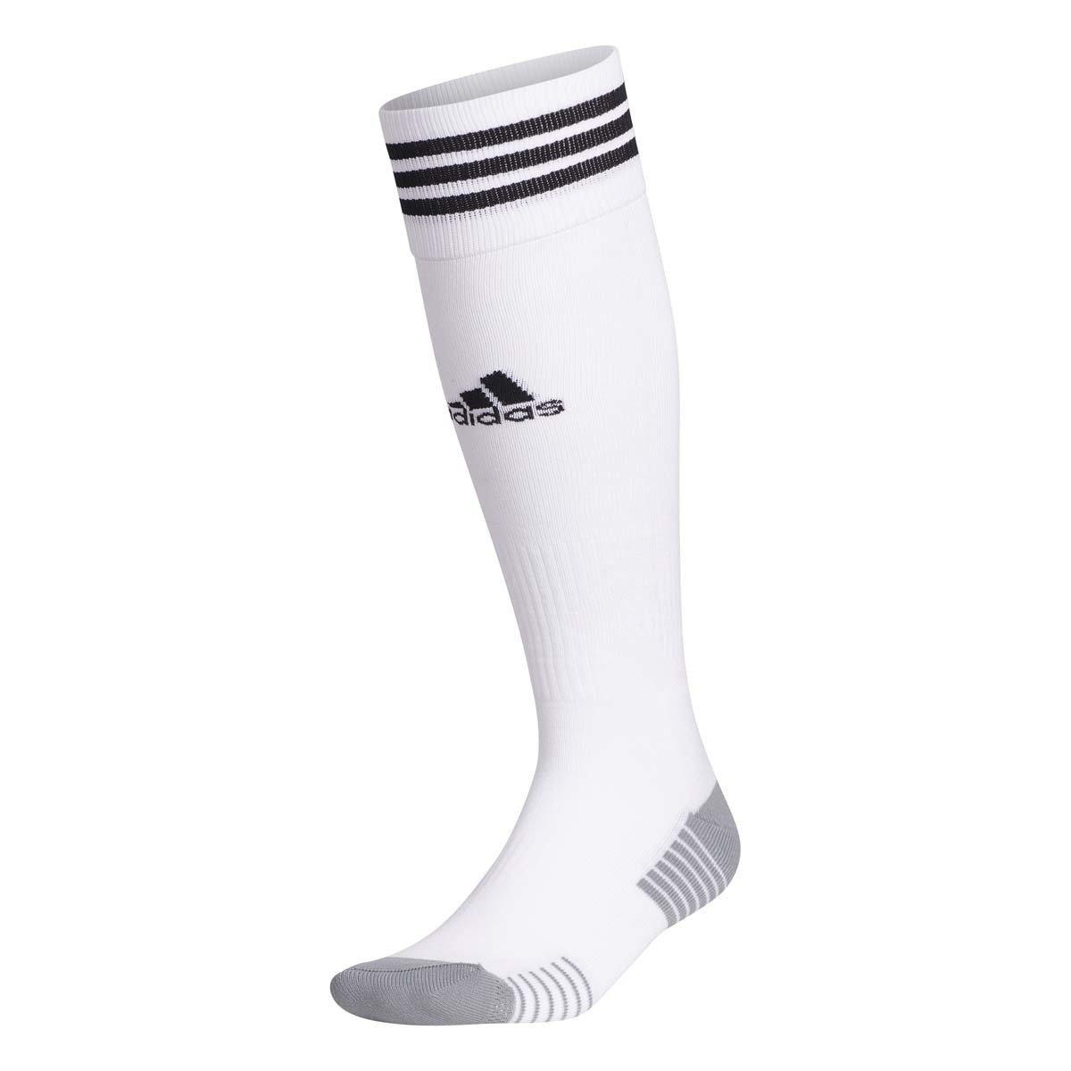 Elevate your soccer game with the Adult adidas Copa Zone Cushion IV Knee High Soccer Socks. These socks are designed with a fully cushioned footbed for maximum comfort, and feature moisture-wicking technology to keep your feet dry and comfortable throughout intense matches. The knee-high length provides extra support and protection, while the classic adidas logo adds a touch of athletic style. Whether you're a seasoned player or a beginner, these socks will help you perform your best on the field.