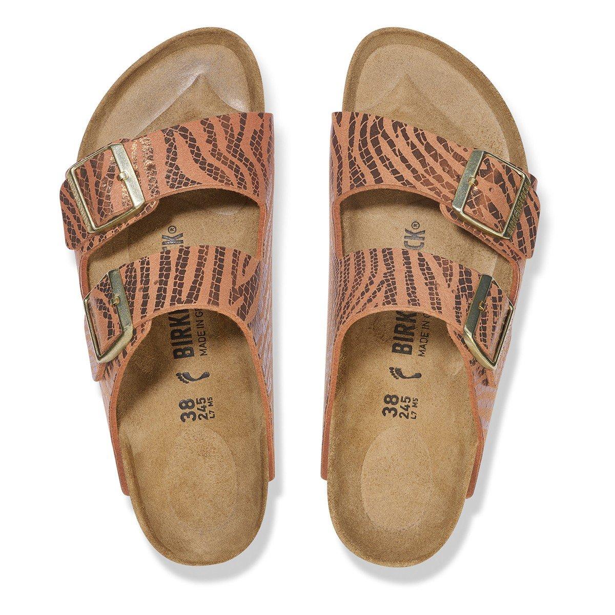 For a classic summer sandal, try the BIRKENSTOCK Arizona Leather Adult Sandals. True to the classic BIRKENSTOCK design, the Arizona Leather adult sandals feature two soft, adjustable leather straps with buckles. Also, the BIRKENSTOCK Arizona Leather sandals feature the iconic BIRKENSTOCK cork footbed that forms to your feet offering incredible arch support and all-day comfort. Plus, the deep cup prevents your foot from sliding forward, while the roomy toe box offers added comfort. For a supportive, stylish, and comfortable summer sandal, try the BIRKENSTOCK Arizona Leather Adult Sandals.