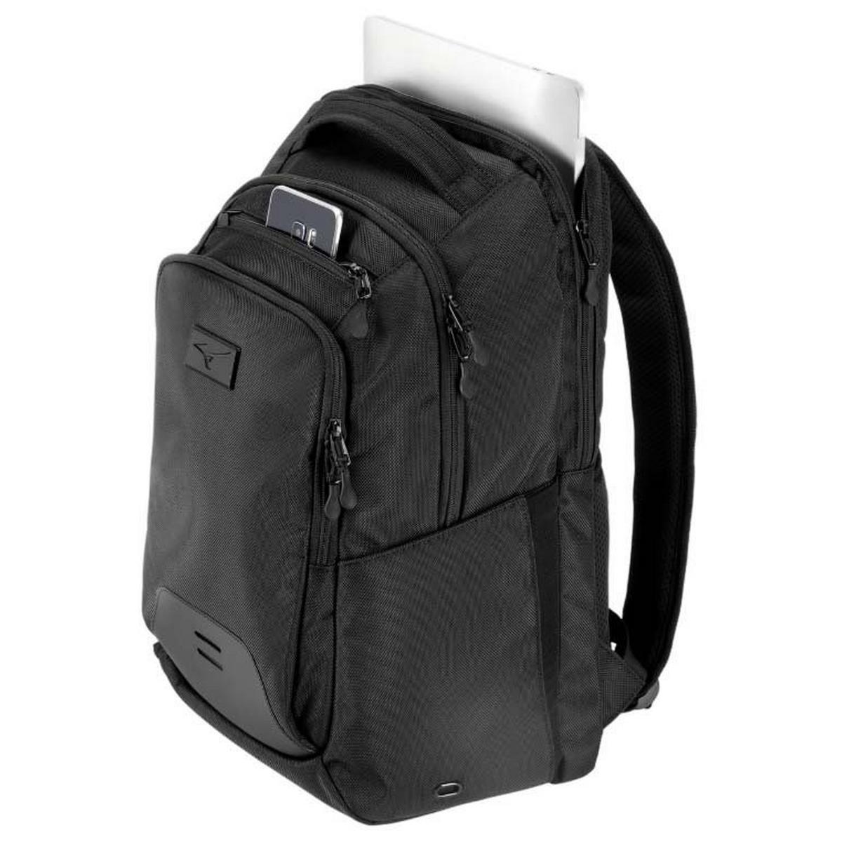 Mizuno's Front Office 24 Backpack was designed with comfort and versatility in mind for those who live their life both in and out of sports. Designed with an adjustable, padded shoulder straps and padded back for superior comfort. Made to fit your laptop, it includes a 17" computer sleeve, and multiple storage compartments. A water pouch and customization area for embroidery makes this a great backpack option.