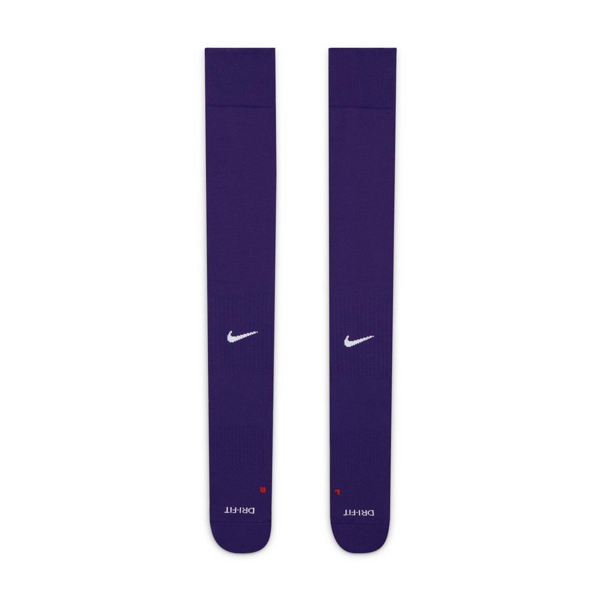Experience unparalleled comfort and support with the Adult Nike Classic 2 Cushioned Knee High Soccer Socks. These socks are engineered with Dri-FIT technology, ensuring your feet stay dry and comfortable even during the most intense matches. The added cushioning reduces impact and provides extra protection for your feet. Their knee-high design offers extended coverage for enhanced stability and warmth. With Nike's signature swoosh logo, these socks not only deliver performance but also a classic, stylish look on the field.