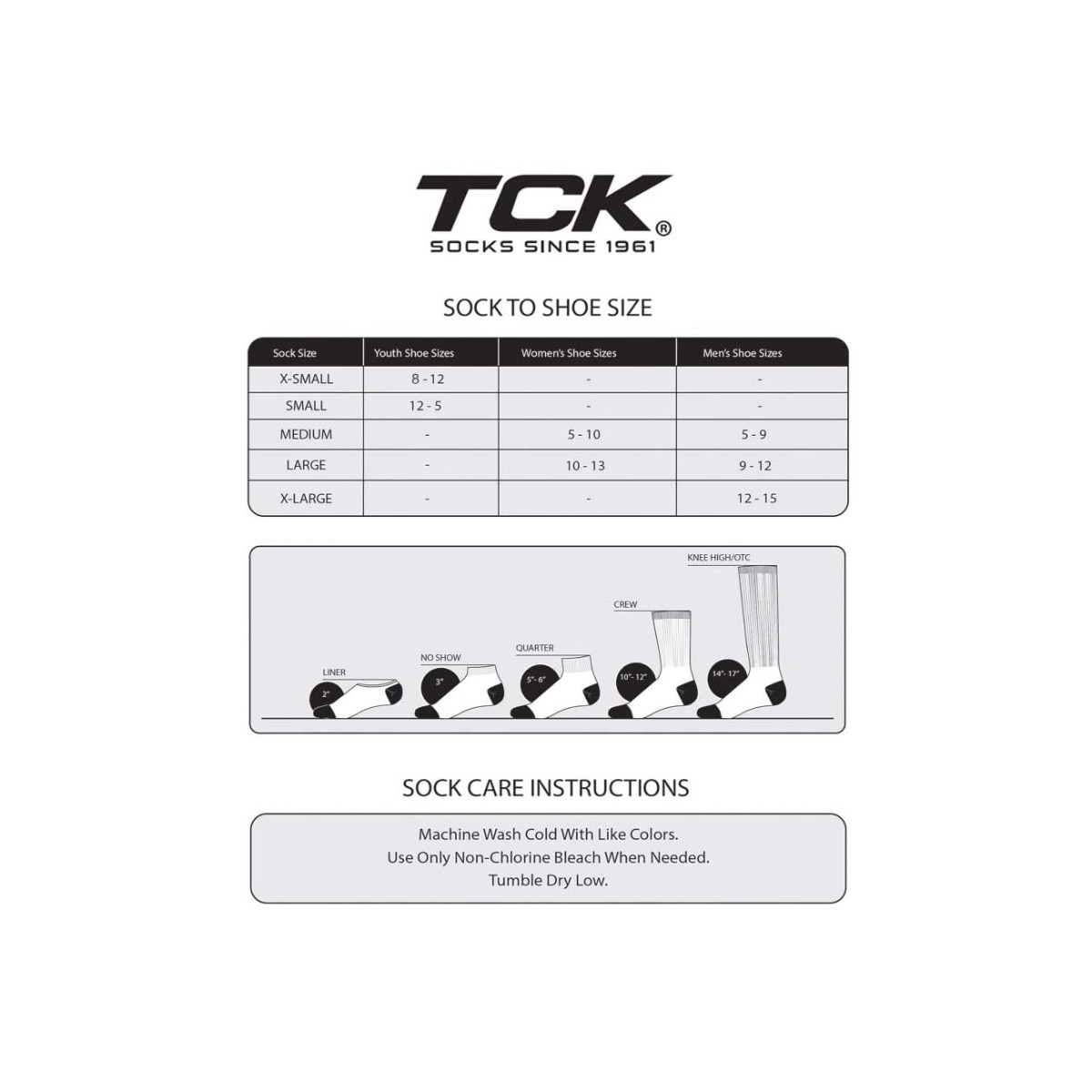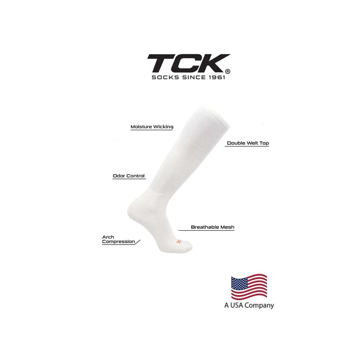 The TCK Prosport Over the Calf, Knee High Socks are essential for athletes seeking comfort, durability, and top-tier performance. Perfect for baseball, softball, soccer, football, volleyball, and more, these socks are crafted with a moisture-wicking proDRI system to keep your feet dry and cool. Made from a high-quality blend of 66% Polypropylene, 25% Polyester, 7% Rubber, and 2% Spandex, they provide a snug, flexible fit that maintains its shape through intense use. TCK was founded in 1961 in North Carolina, these socks represent decades of dedication to crafting reliable athletic gear that supports American workers and delivers unmatched quality. TCK Prosport socks are designed to elevate your performance and stand up to the demands of your active lifestyle.