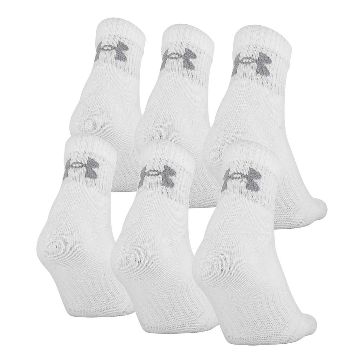 The Under Armour Training Cotton Quarter 6 Pack Socks are the perfect essential socks. This pack of Under Armour socks come with six pairs of ankle-length socks. The cotton/poly blend is comfortable and breathable so you can wear them from home to the gym. These Under Armour socks go with every outfit. Stock up on the necessities with the Under Armour Training Cotton Quarter 6 Pack Socks.