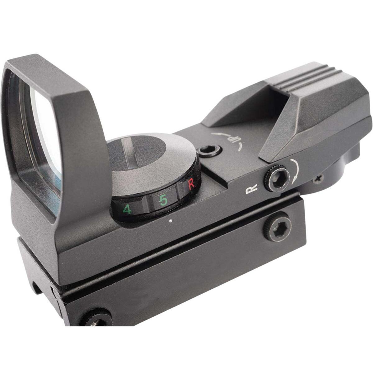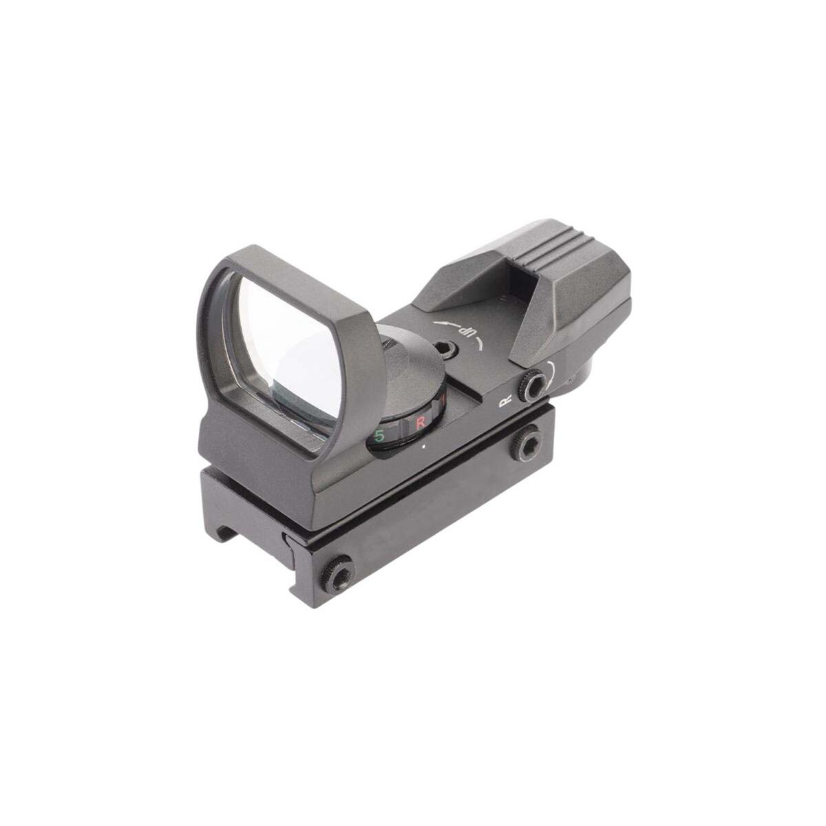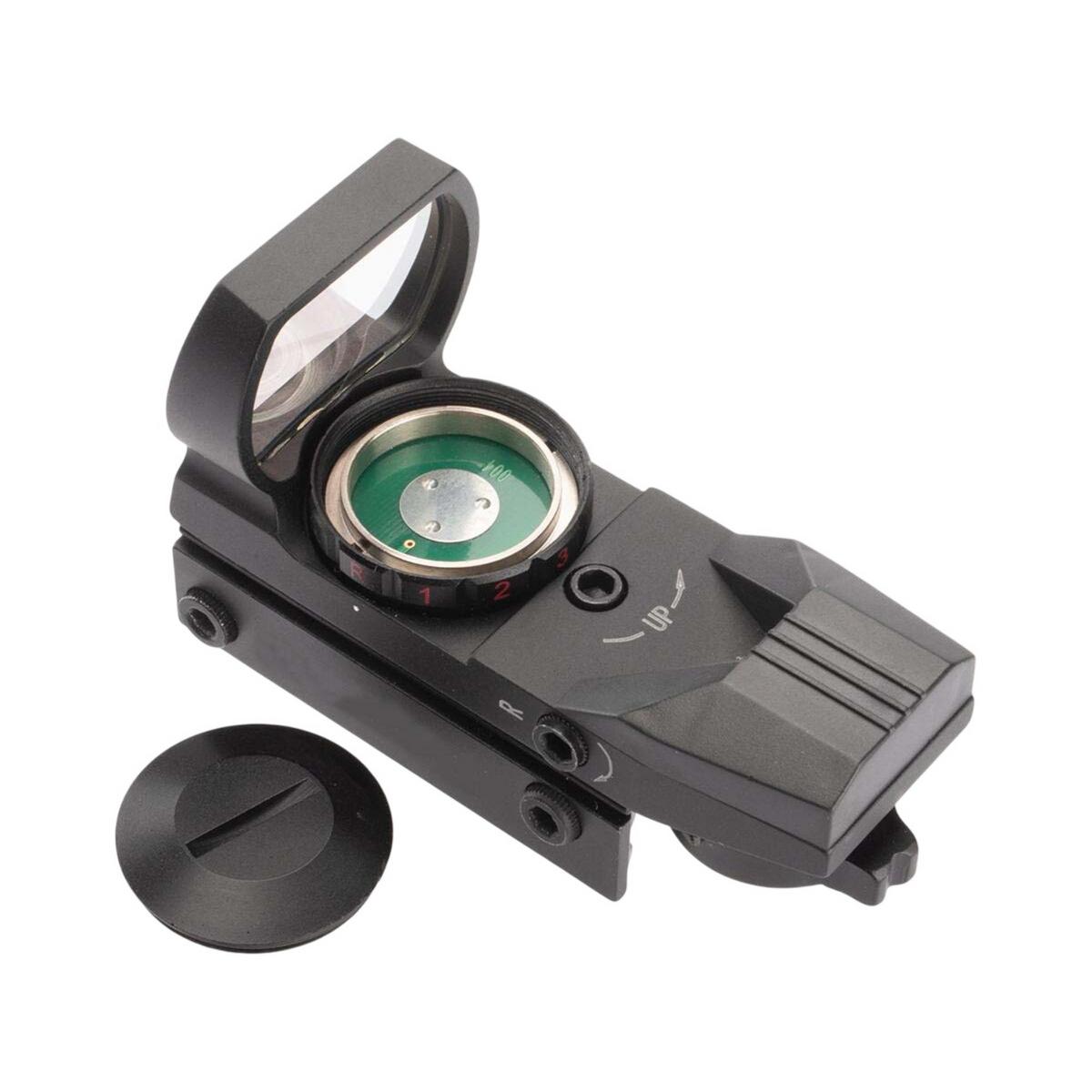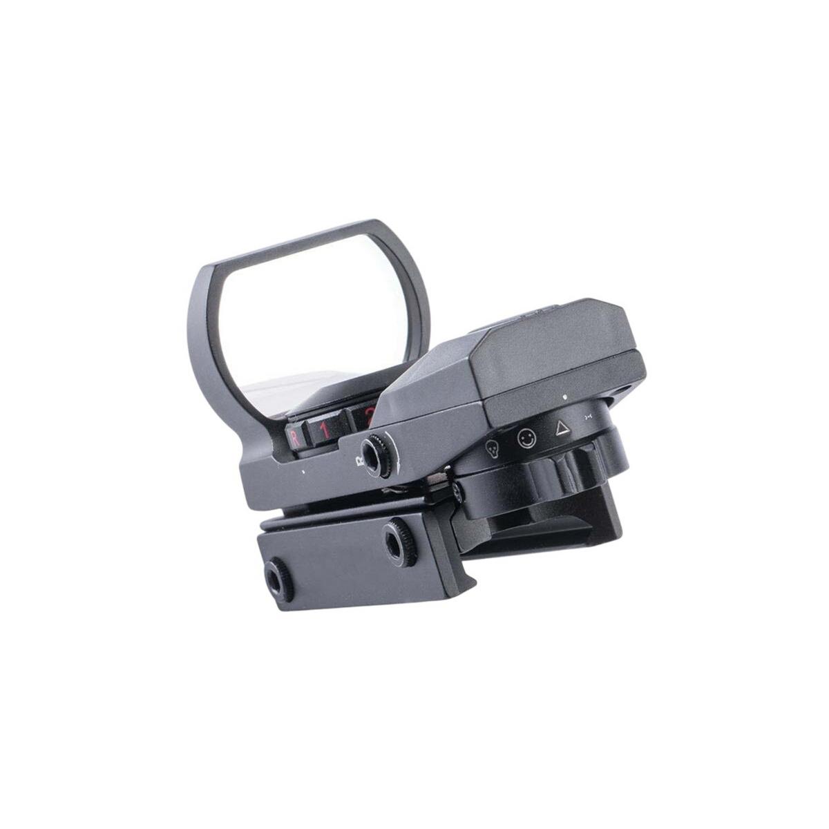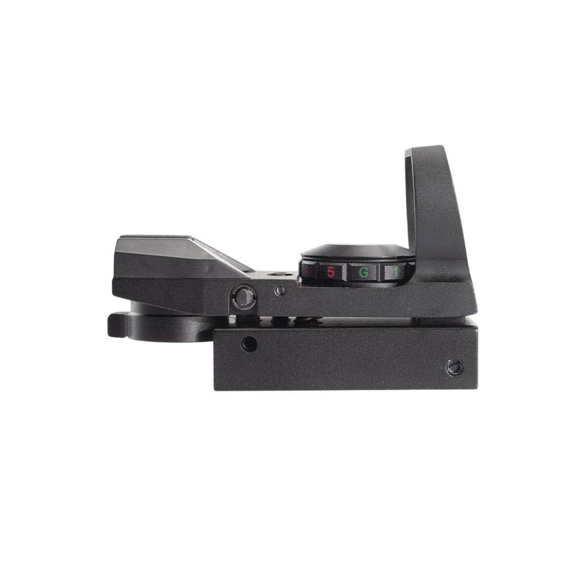 The AIM Sports Warfare Edition Panorama Red/Green Dot Sight is engineered for fast target acquisition. Its tubeless design and large 33mm reflex lens offer a wide field of view, perfect for rapid-fire or shooting at moving targets. Easily switch between four custom reticle patterns without altering the point of impact. Featuring parallax correction, unlimited eye relief, and precise windage/elevation adjustments, this sight includes a built-in mount for standard rails and delivers an awesome, aggressive look without sacrificing accuracy.