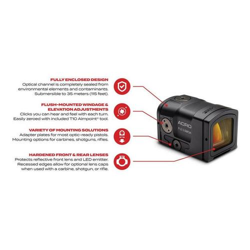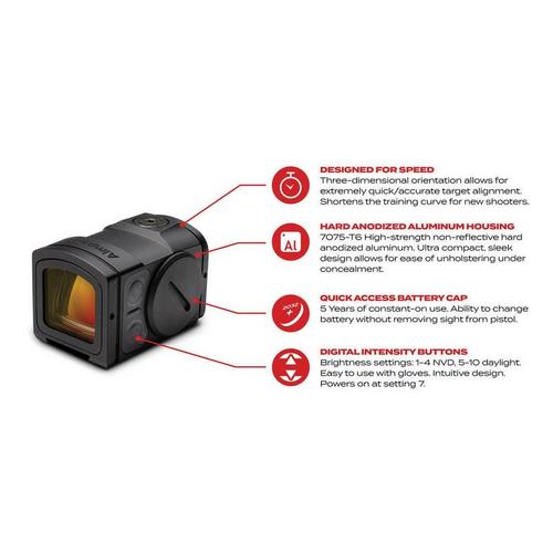 - Reflex Sights: Features a slim, lightweight frame for fast target acquisition and an unobstructed field of view.