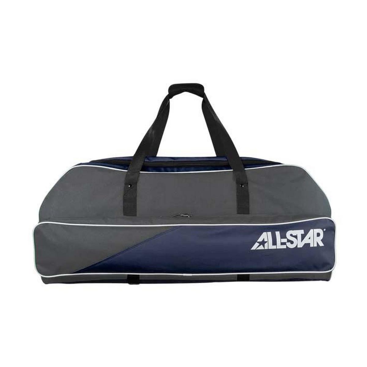 Introducing the All Star Catcher's Duffel Bag, the ultimate companion for baseball enthusiasts! This spacious bag is expertly designed to carry all your catcher's gear, keeping it organized and easily accessible. Made with durable materials, it ensures long-lasting performance. The bag features multiple compartments, including a ventilated shoe compartment, a helmet storage pocket, and ample space for your gloves, chest protector, and more. With its adjustable shoulder strap and convenient handles, carrying your gear to and from the field has never been easier. Upgrade your game with the All Star Catcher's Duffel Bag today!