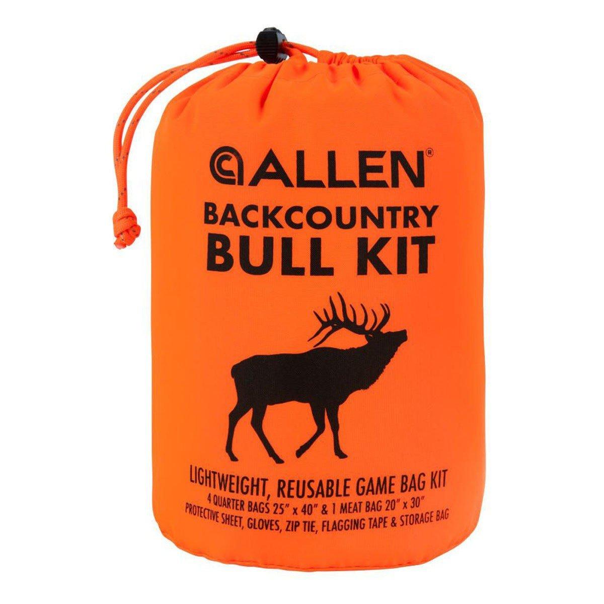 The Allen Company Backcountry Bull Kit includes everything you need for your next Elk hunt. The pack provides all the contents you need to pack your meat, including 4 quarter-sized game bags, 1 meat bag, a protective sheet, pair of gloves, zip ties, flagging tape, and 1 storage pouch. The game bags are made of a heavy-duty construction, designed for packing out elk quarters and boned-out meat. The game bags are made of a highly durable fabric, providing maximum strength to safely carry your contents through the field or when hanging in the trees. Designed with a lightweight wicking material, the game bags remain highly breathable, allowing your meat to cool while keeping your meat protected from insects or debris. Packed with technical features, these game bags are made with a reflective drawstring cord to easily be identified once darkness falls. Bags are designed with a cinch toggle closure to ensure your meat remains securely fastened and protected. The storage pouch is made of a Blaze Orange-colored fabric to easily identify and to help keep your gear organized. The kit provides long-term benefits as the bags can be washed and reused for future use. Each bag is labeled with size and care instructions for easy reference and identification and to ensure the proper treatment is made to your investment. Choose the Allen Company Backcountry Bull Kit as the optimum choice to add to your collection. Pack includes 4 quarter-sized game bags and 1 meat bag. Each quarter-sized bag (4) measures 20-inches wide x 30-inches long. Meat bag (1) measures 15-inches wide x 20-inches long. What started over 50 years ago, with a single gun case, Allen Company has grown into one of the premier brands in the outdoor industry. We passionately focus on developing high quality hunting, shooting, archery, and tactical gear with affordability. As outdoor enthusiasts, we understand your passion for what you do and are excited to be the brand you choose for your next adventure. Whether you take to the field or the range, our products are designed and tested by outdoor experts to ensure optimal performance at the highest level. Your experience is only limited by your gear—discover your potential with Allen Company.