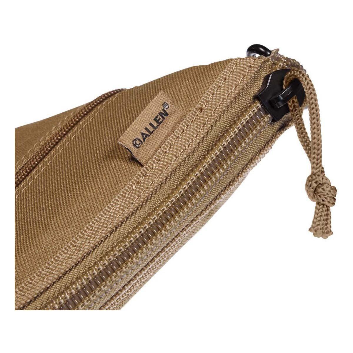 The Torrey Handgun Case line by Allen is a soft case that will fit a wide variety of semi-auto and revolver type handguns. These soft cases feature a large, zippered pocket on the front that works great for cleaning accessories or a spare magazine. The Torrey cases also come with a convenient carrying handle on the back of the case. The main zipper runs two-thirds of the way around the case allowing it to open fully, and fold flat to be used as a pistol rug at the range. Inside the case features a muzzle pocket that you can inset the barrel or front part of the slide into to help keep the handgun from sliding around when you are transporting the firearm.