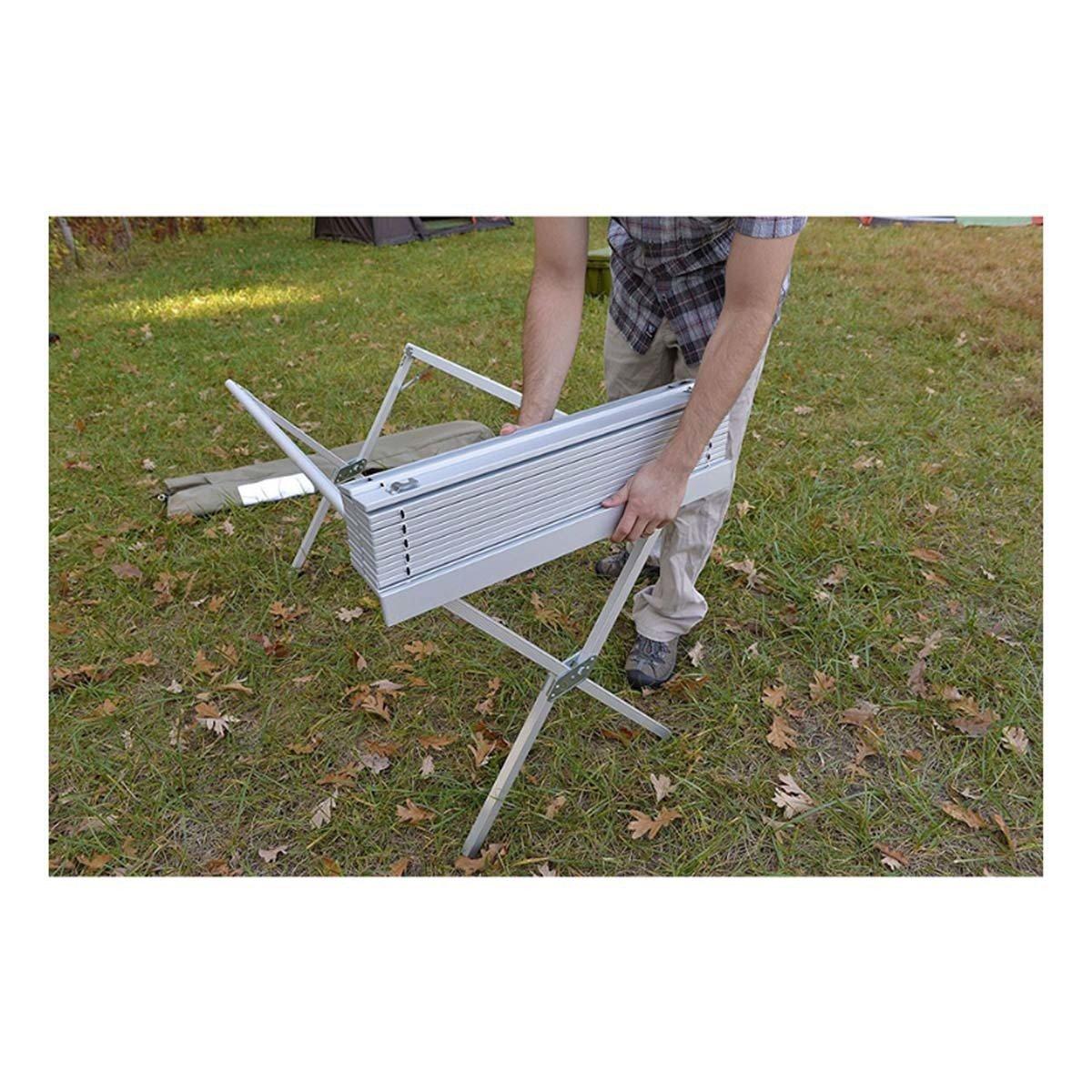 Whether you're playing cards or eating dinner, the ALPS dining table is sure to be a hit! On your next outing, take one of these tables along and make your event even more enjoyable. This easy-to-use folding table is great for camping, backyard barbecues, holiday get-togethers, and tailgating. Made with a sturdy aluminum X-frame and fold-up top, the table sets up easily and is designed with no interfering side supports so chairs can move up close. You can comfortably sit up to the table without worrying about hitting your knees on the side supports. When the party's over, the tabletop and frame collapse quickly and slide easily into a convenient shoulder carry bag for compact storage or transport. As durable, sturdy, and lightweight as this table is, it's easy to see why it is a top seller!