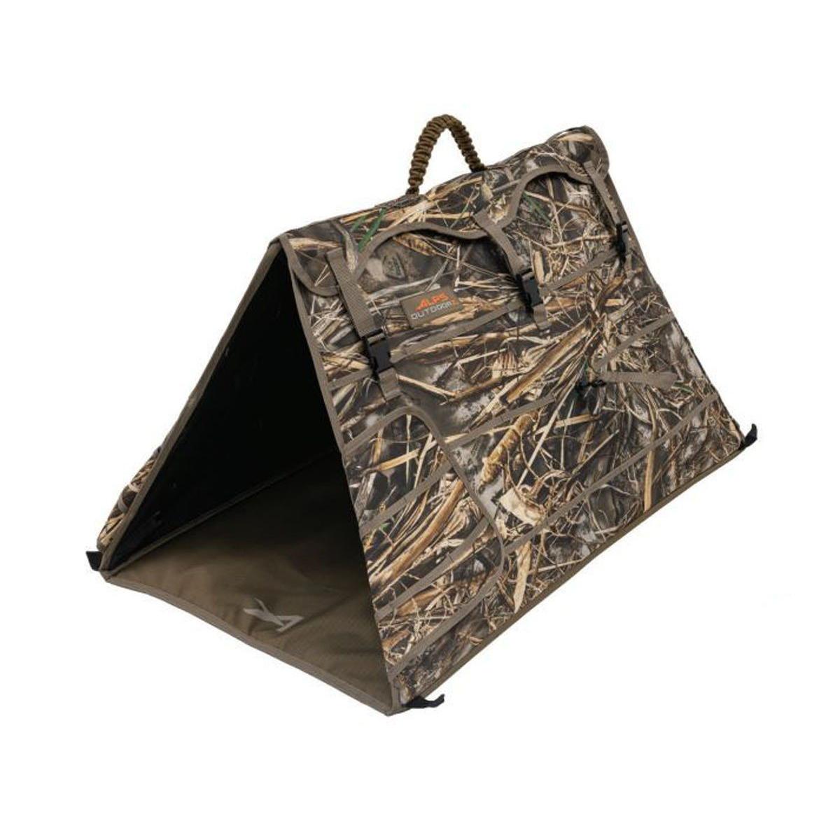 With its unique and quick-access design, the Alpha Dog Blind, is the most versatile and effective dog blind on the market. The Alpha Dog Blind provides your favorite hunting companion the comfort and concealment needed for a full day's hunt in the harshest conditions. Using a unique aluminum hub design with engineered tips and pins, the Alpha Dog Blind offers quick and easy set-up in seconds. A tapered roof peak allows an unobstructed line of sight for your dog while keeping him concealed. Constructed of durable Realtree Max-5 600D polyester fabric with black-out backing, the triangular shape of the Alpha Dog Blind provides ultimate concealment from all angles. Meanwhile, the padded 900D polyester fabric floor provides durability and comfort for your partner. Magnetic dual-swing front doors and a dual-swing rear door with buckle closure provide quick and easy exit/entry options for retrieves. A paracord handle and included shoulder carry bag make for easy transport to and from the field. Stakes are included to keep the blind secure. With the addition of the Alpha Dog Blind to your hunting arsenal, your favorite hunting companion will get to experience the excellence and quality you have come to expect from ALPS OutdoorZ.