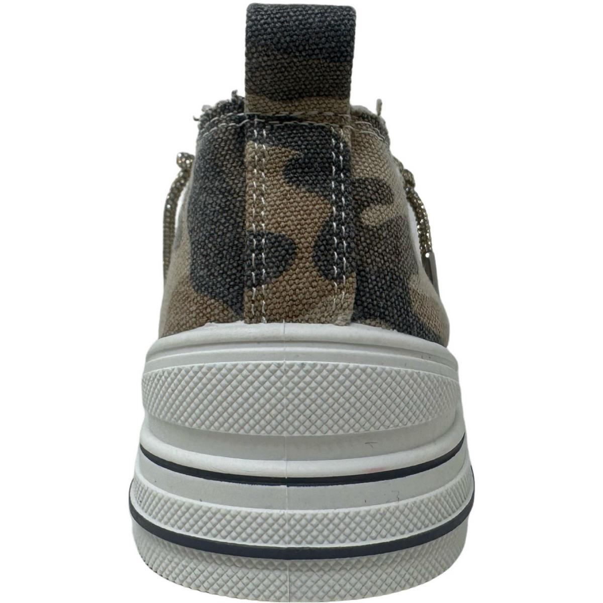 Aman Camo Women's sneaker features our updated camo print, sparkle laces, platform soles and a marshmallow soft footbed
