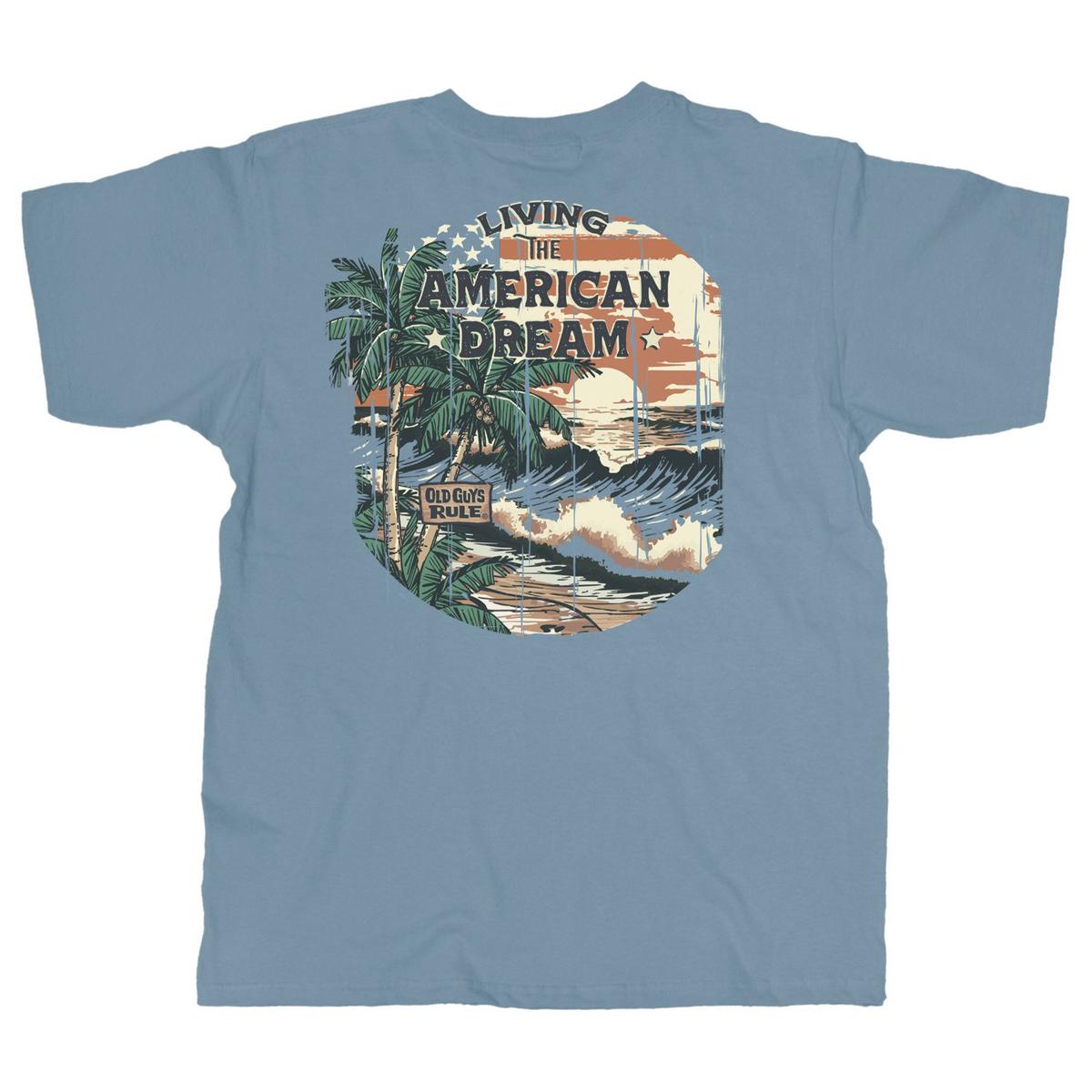 {"reviews":[],"offset":0,"limit":10,"total":0}"Full Description:\nShirt Text: Old Guys Rule, Living The Ameriacn Dream Front Design: Mini design on left chest, Back Design: Large design, Fit: Runs true to size\n\nFeatures:\n\u003cul>\n\u003cli>Graphic Tees\u003c/li>\n\u003c/ul>\n\nSpecifications:\n\u003cul>\n\u003cli>Short sleeve\u003c/li>\n\u003c/ul>\n"