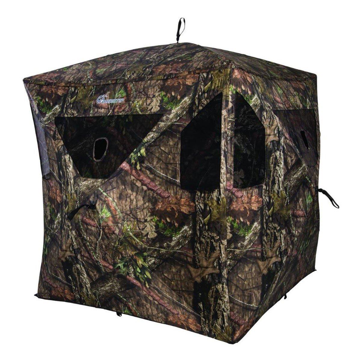 The Ameristep Brickhouse Ground Blind is built with a simple design for easy setup and takedown. The ShadowGuard coating eliminates shadows and silhouettes to keep you hidden. The see-through mesh windows and gun ports give you the necessary viewpoints to make successful shots. Plus, you can have multiple firearm hunters who need extra elbow room.