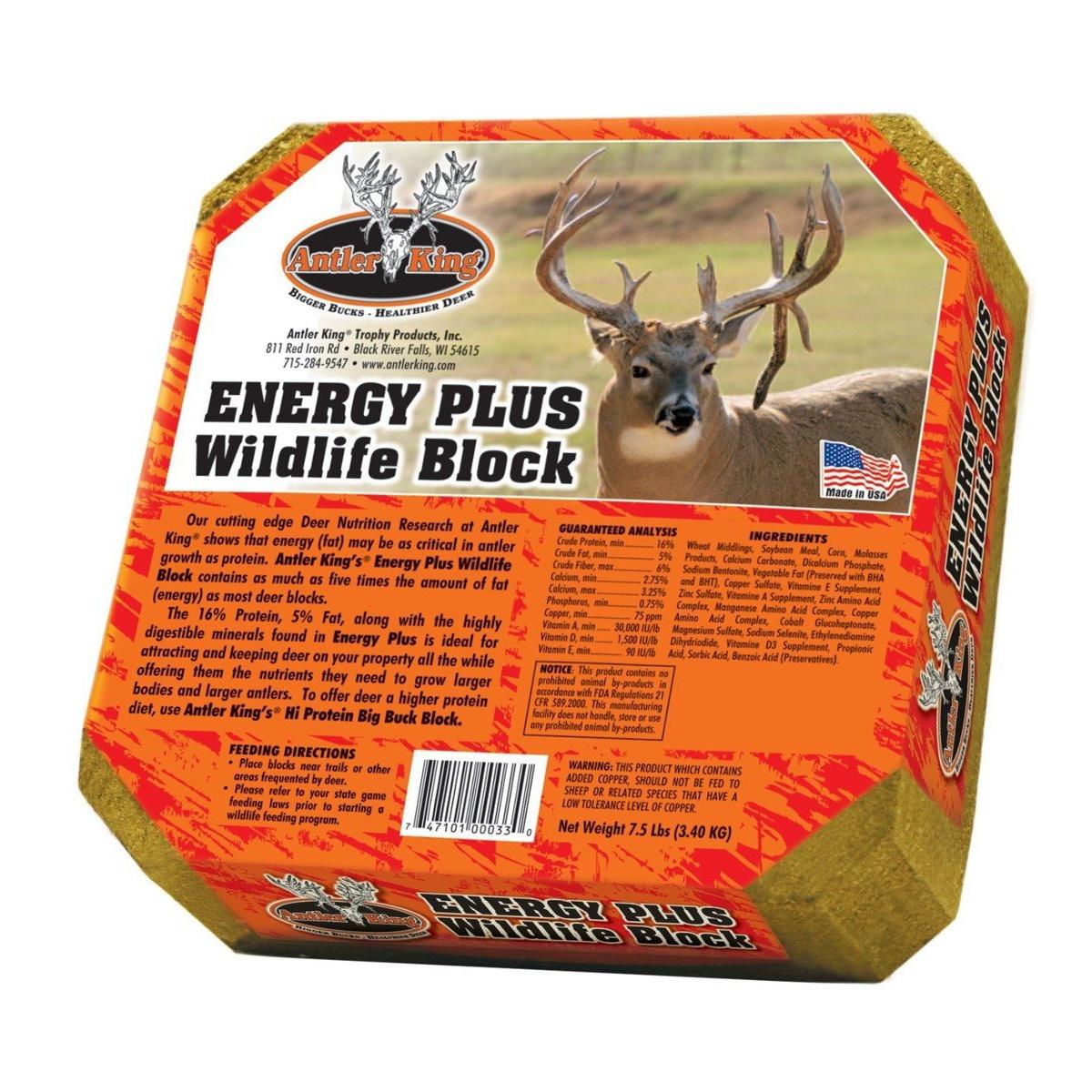 Antler King's Energy Plus Wildlife Block gives deer everything they need for antler and body growth and does it in one compact block. Antler King's cutting edge deer nutrition shows that energy (fat) may be as critical in antler growth as protein. Energy Plus Wildlife Block contains THREE TIMES the amount of fat (energy) as most deer blocks on the market! At 3% fat and 16% protein Energy Plus is ideal for attracting and keeping deer on your property all while offering them the nutrients they need to grow larger bodies and larger antlers.