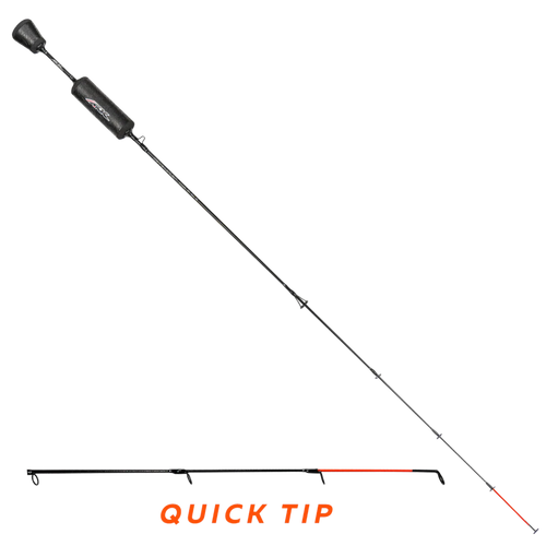 The Catalyzer Series Ice Rod features a premium solid carbon blank and Custom polymer split grips. Lightweight stainless steel guides on this rod stand up to harsh conditions. High Visibility Strike Indicator* detects even the slightest bites beneath the ice! Designed for versatility, this series is perfect for a range of ice fishing styles and techniques, targeting panfish, trout, and walleye.