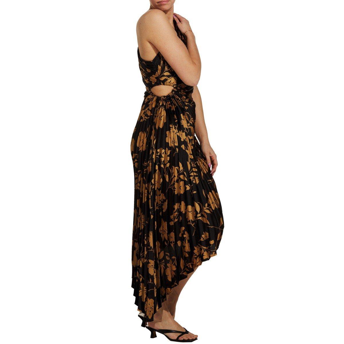 Women's DRESS FORUM Asymmetrical Pleat One Shoulder Midi Shift Dress
