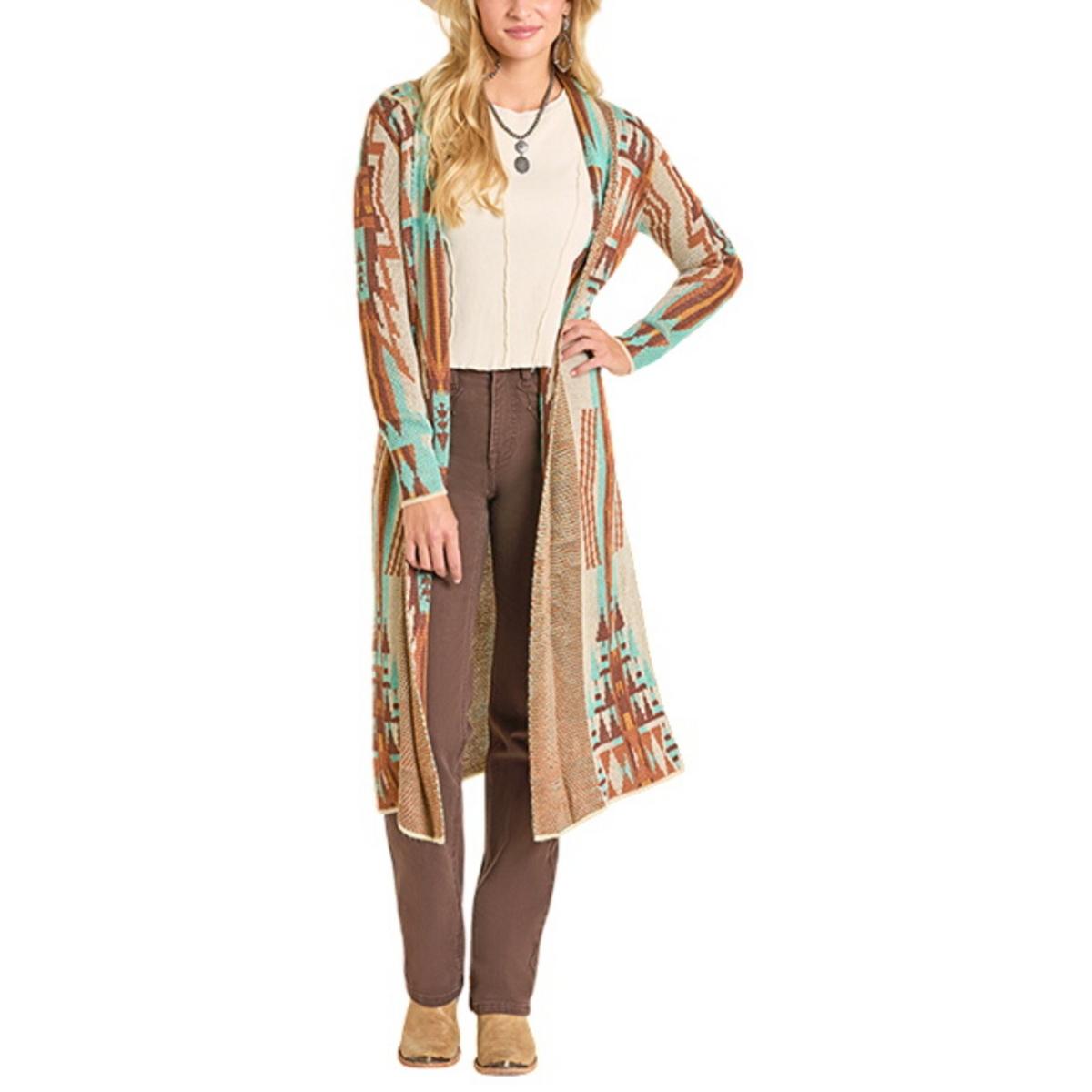 Women's Rock & Roll Denim Aztec Duster Cardigan