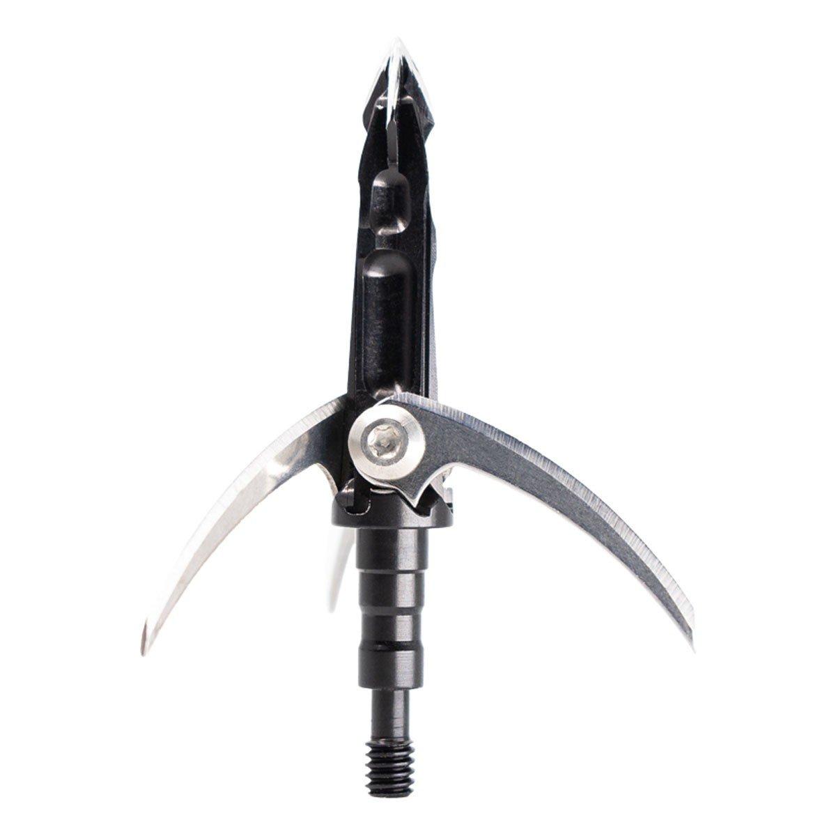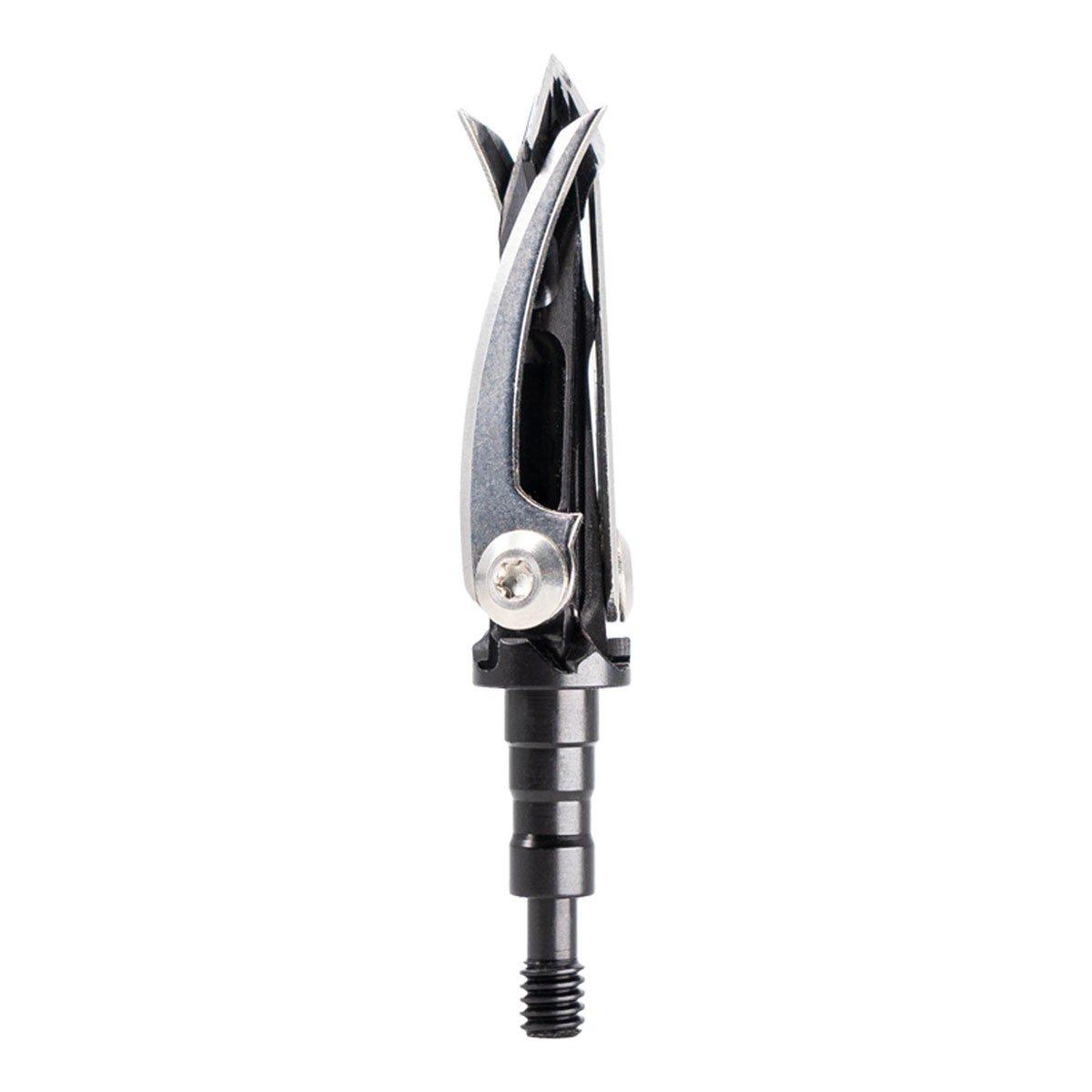 B3’s Exoskeletal Broadheads are stronger, straighter and superior — a patented design built by archers and hunters, like you. The curved blades cut faster and penetrate longer. A combination of blades lying flat and a friction grommet under the blades eliminates external bands, and produces a quiet flight and field-tip accuracy. The pre-loaded blade angle is quick to deploy, and the head design features built-in stops for both closed and open positions, preventing arrow damage. The Meg 100 XB features an 100 grain head with a steel collar.