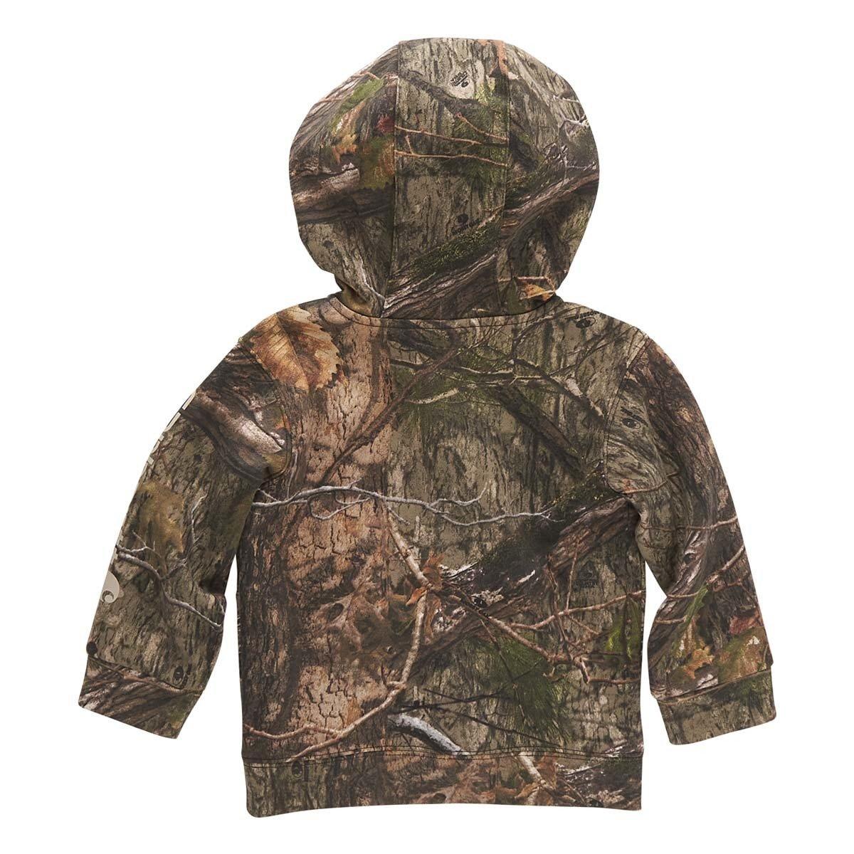 Chilly days are no match for this toddler boys' sweatshirt. Fleece will keep him warm even when the temps drop. Signature camo preps him to live that Carhartt life. A half zip makes quick changes easy.