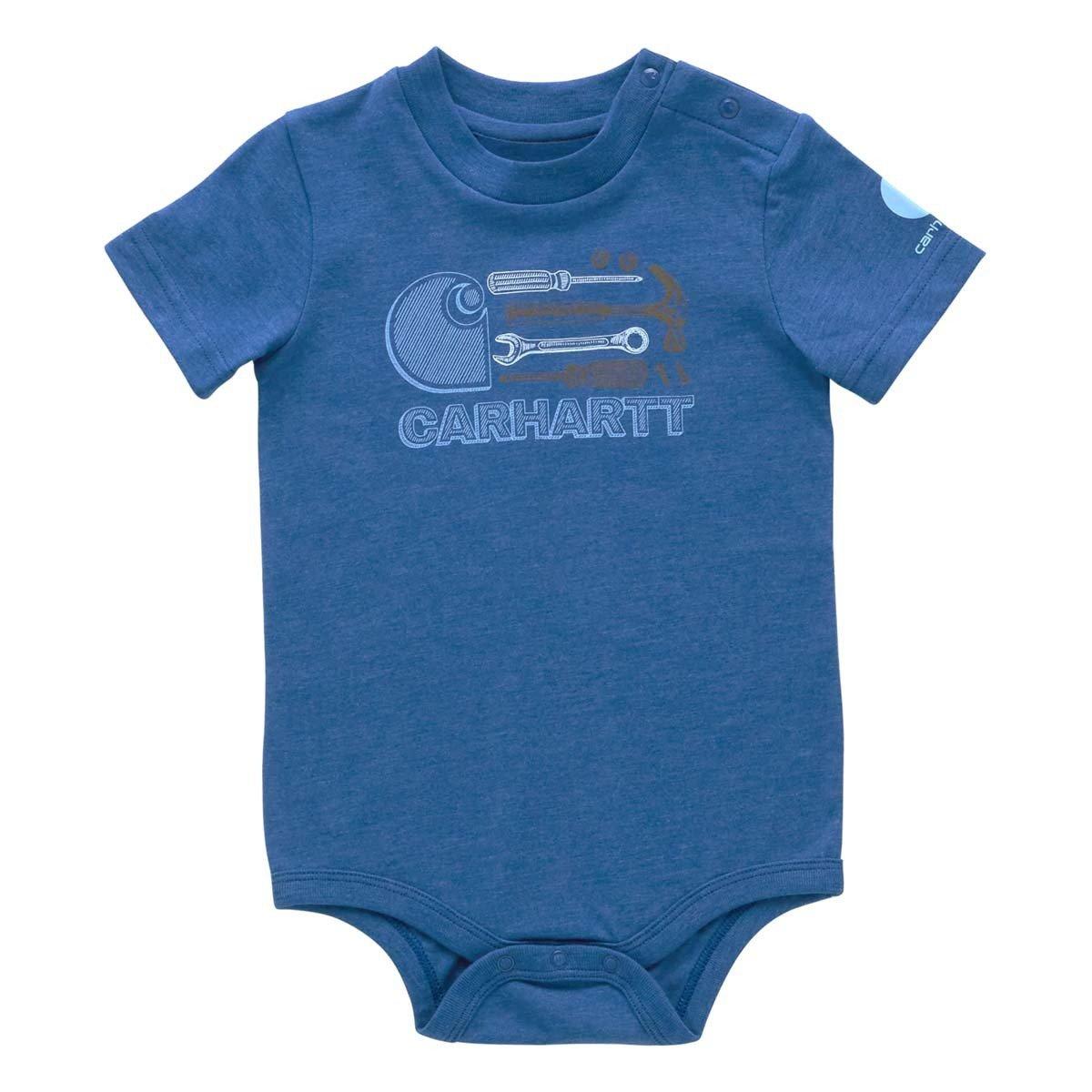 All this baby boys' bodysuit is missing is the toolbox to match. Carhartt is all about comfort with a tag-free design and snaps for easy on and off. One less thing that needs fixing around your house.