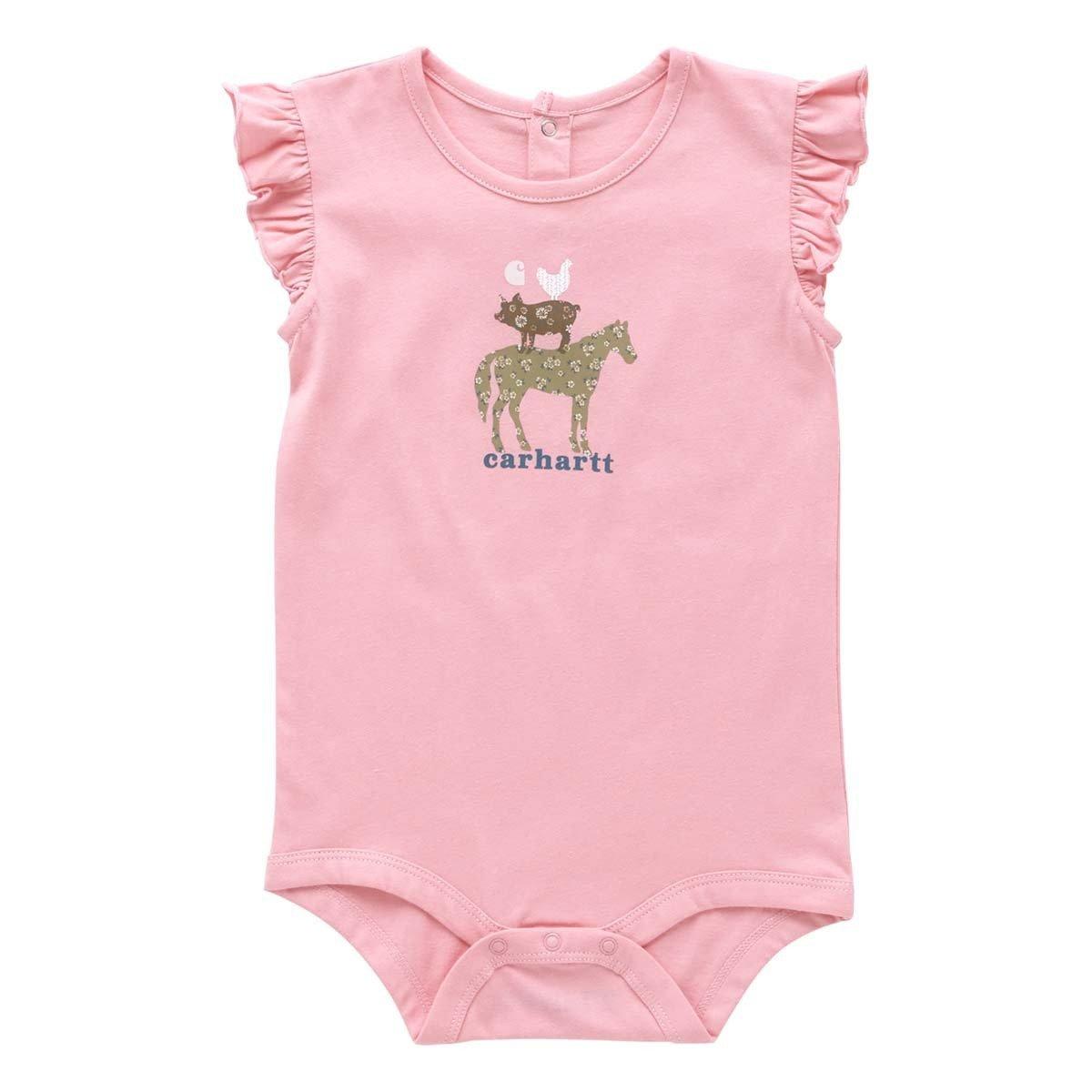 Your barn baby will be comfy and stylish in this Carhartt bodysuit for girls that can keep up with whatever is dished out. The cute graphics and soft feel easily transition from playtime to nap time. Convenience features and durable fabric make this a go-to for active adventures.
