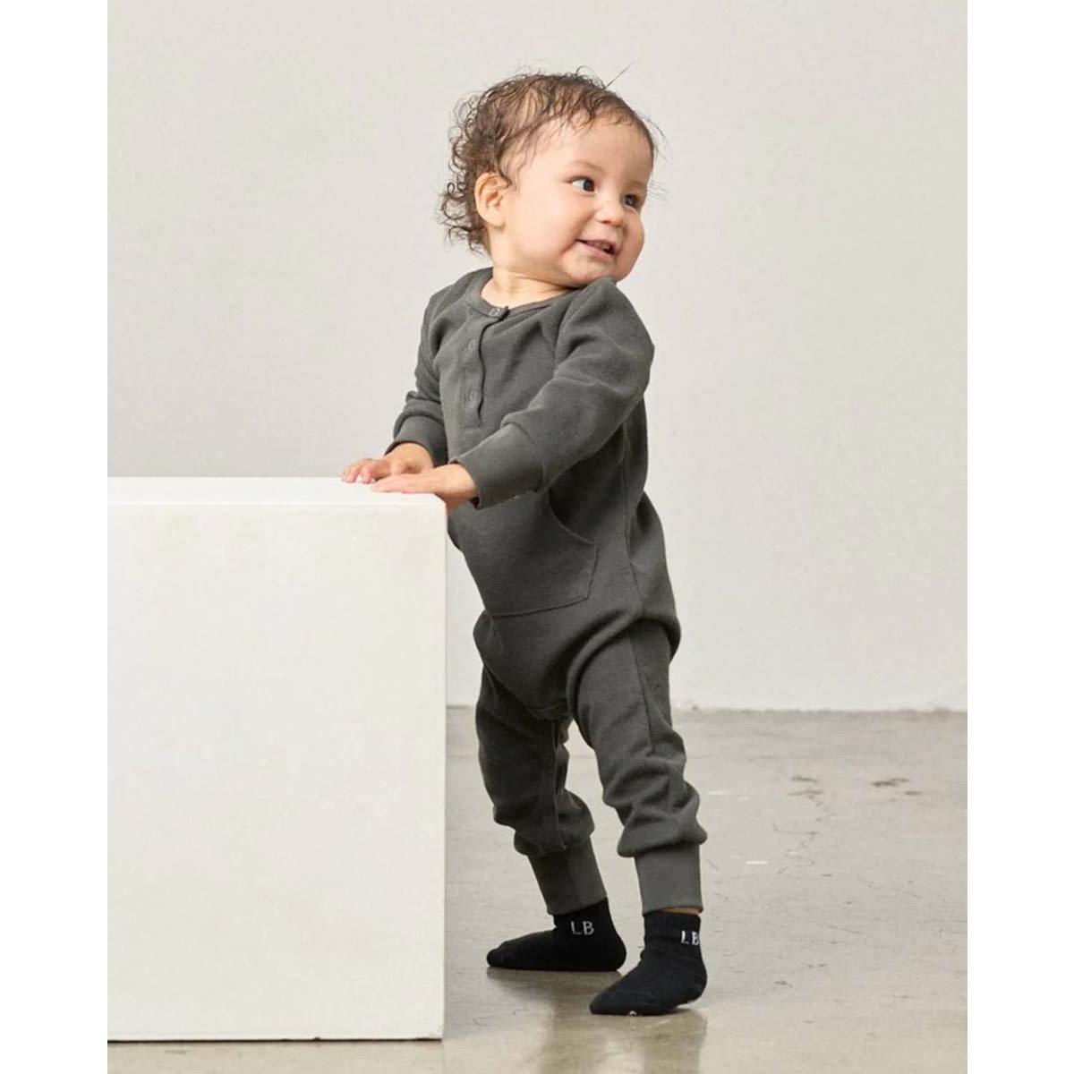 LB's Waffle Romper is a cozy one-piece wonder featuring a button-front closure and made from a soft waffle-knit fabric for ultimate comfort. Perfect for easy outfit changes and all-day wear, this romper is a go-to for little ones from 0-3M to 18-24M.
