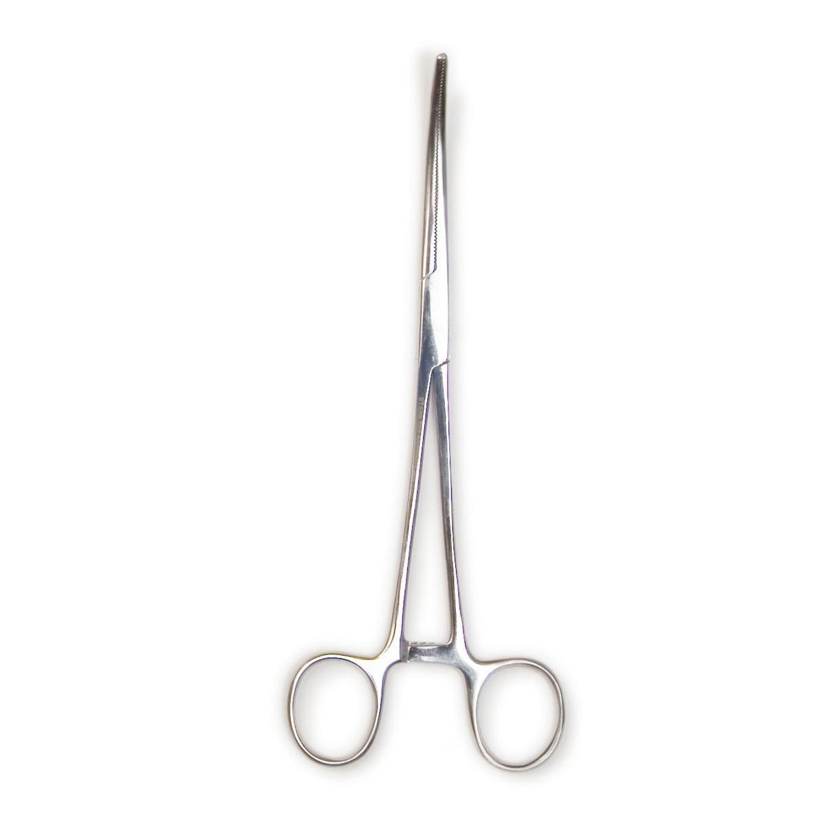 Stainless steel fisherman's forceps feature a serrated wide curved tip with large finger loops. The 8-inch length makes it great for removing deep-set hooks. Also great for tying flies, de-barbing hooks or crimping split shot.